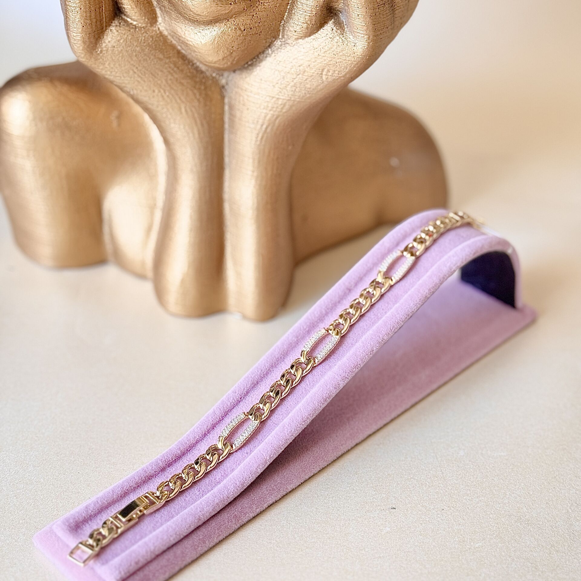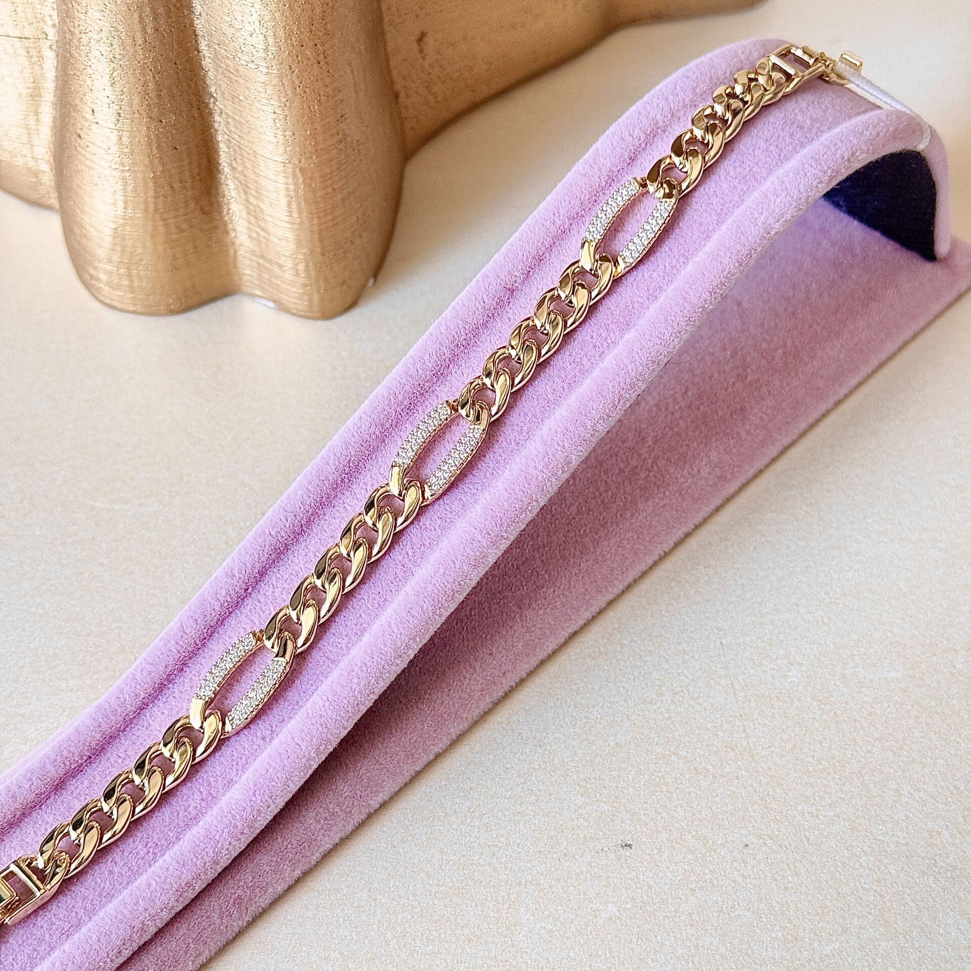 14K Gold Kaplama Kalın Zincir Bileklik Zirkon Taşlı Kararmaz