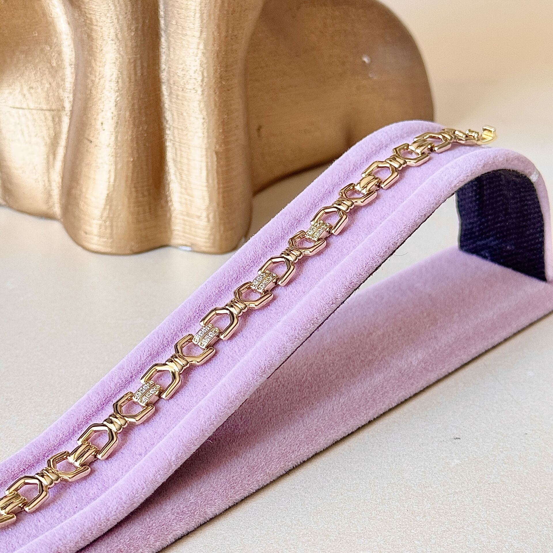 14K altın kaplama zincir bileklik, zarif ve modern tasarımıyla günlük kullanım ve özel gün kombinleri için ideal bir tamamlayıcıdır. Minimal zincir formu sayesinde sade ama dikkat çekici bir görünüm sunar.