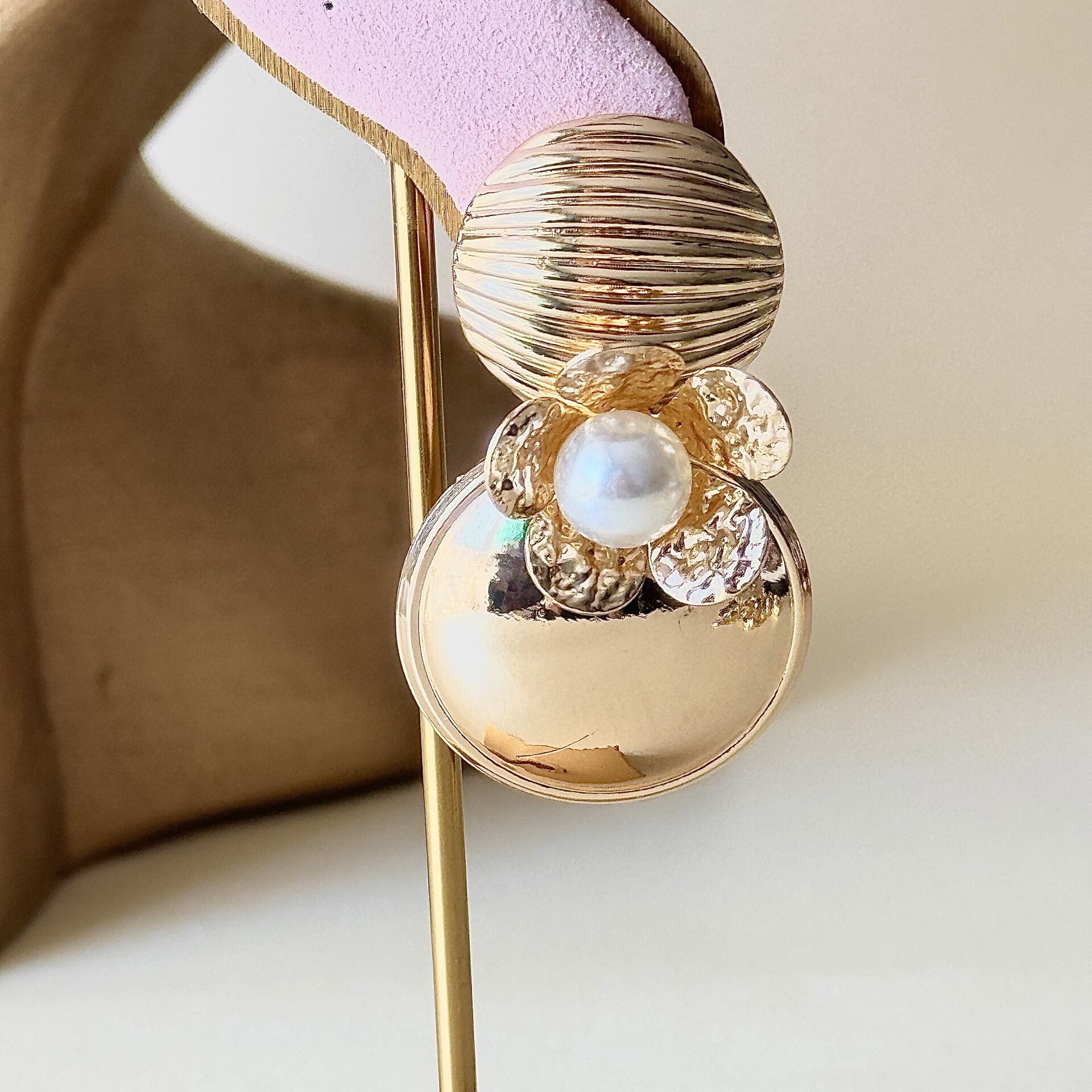 Gold Kaplama Pirinç İncili Küpe | Vintage Zarif Gold Küpe