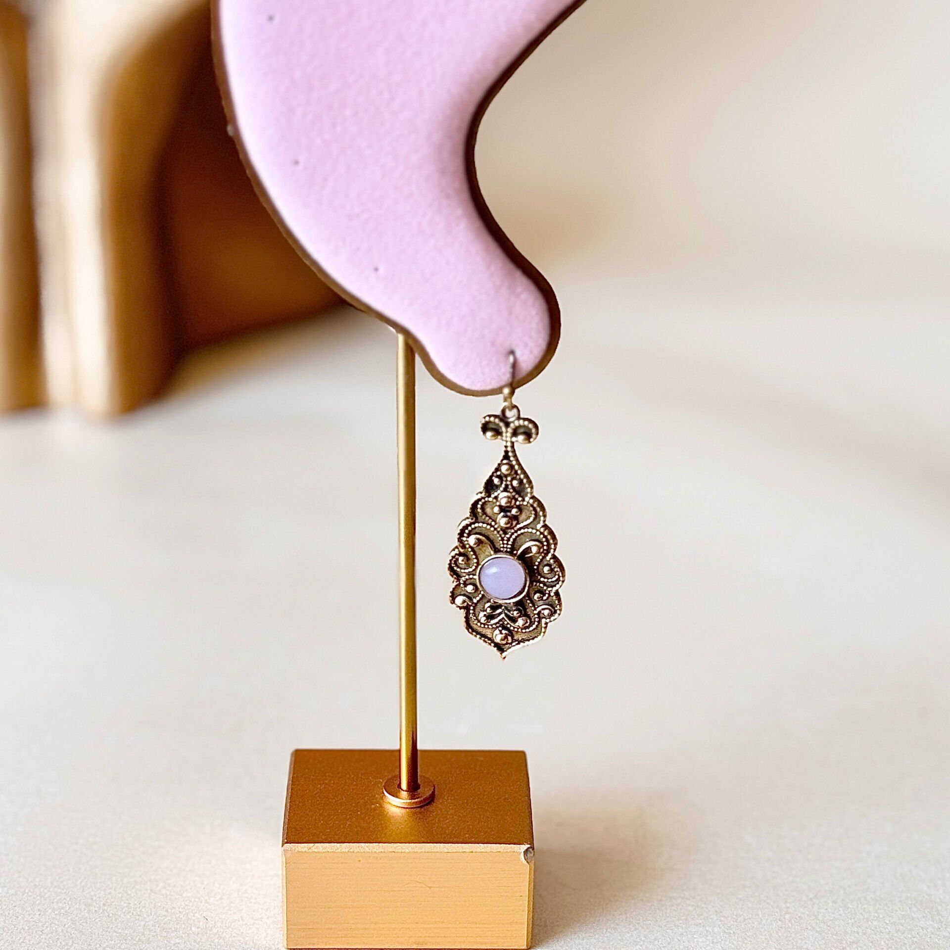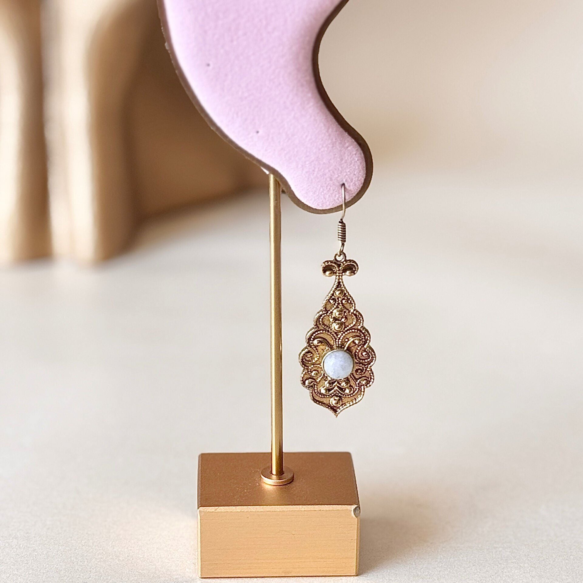 Bakır Küpe Taşlı Vintage Otantik Damla Küpe
