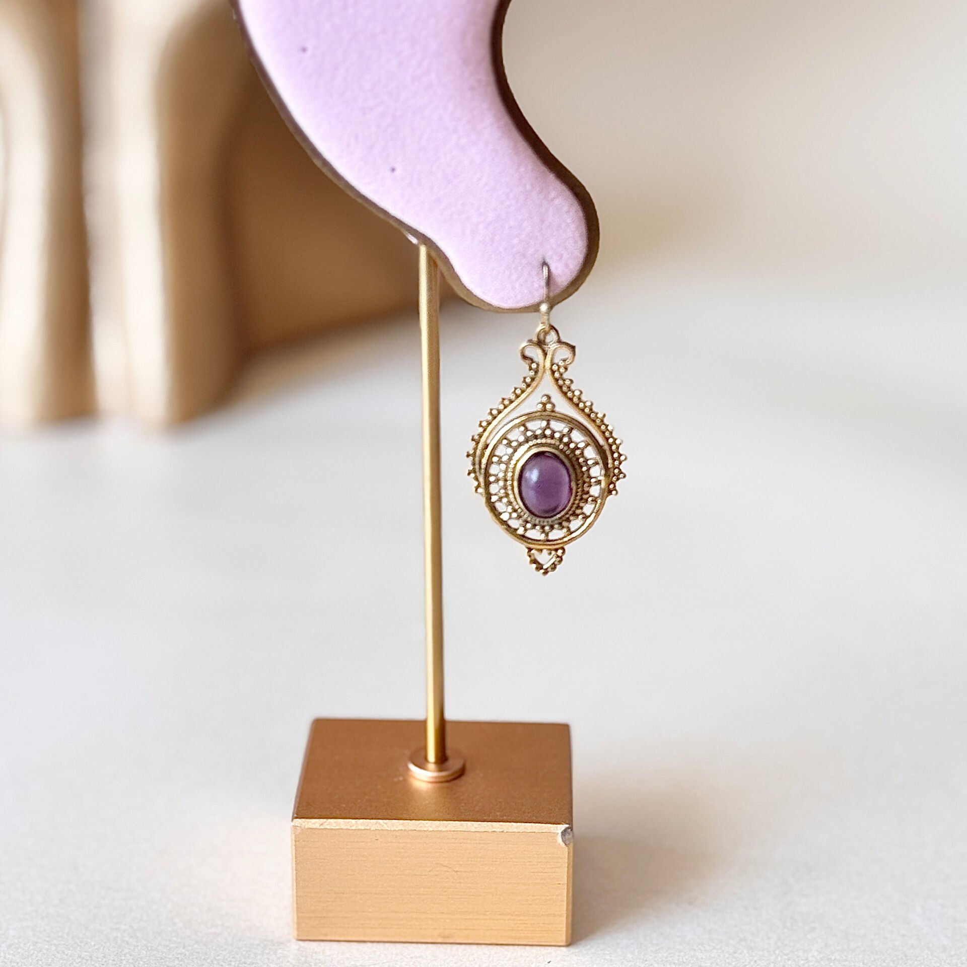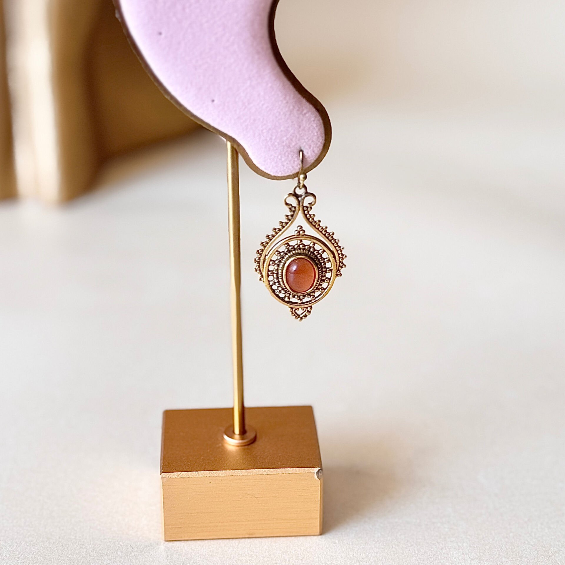 Bakır Küpe Taşlı Vintage Otantik Oval Damla Küpe
