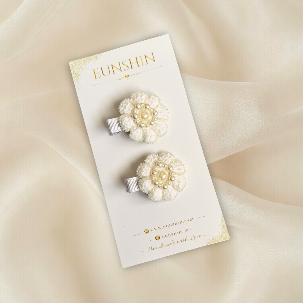 Her bir çiçek kaliteli pamuk iplik ile elde örülmüş olup, dayanıklı ve konforlu kullanım sunan 5 cm grogren kaplı klips toka üzerine sabitlenmiştir. Bu yapı saçta kaymayı önler, sağlam tutuş sağlar ve saç tellerine zarar vermeden gün boyu rahat kullanım sunar.