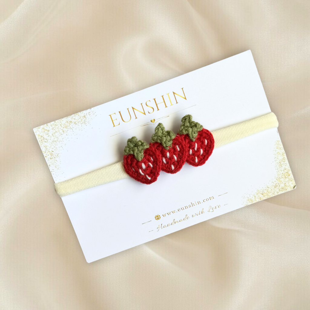 Çilek Figürlü Bebek Kafa Bandı – El Örgüsü Bebek Saç Bandı