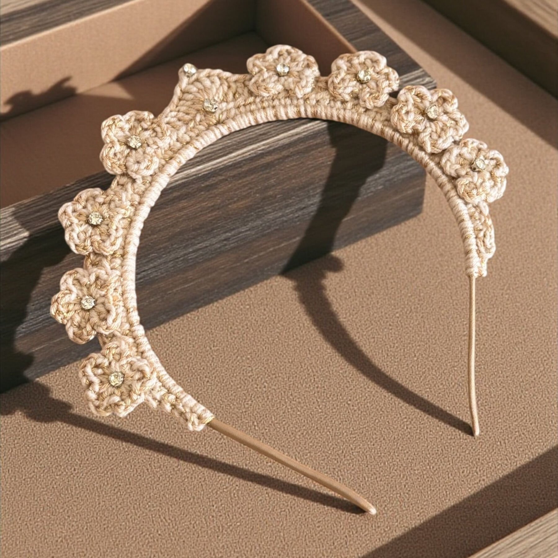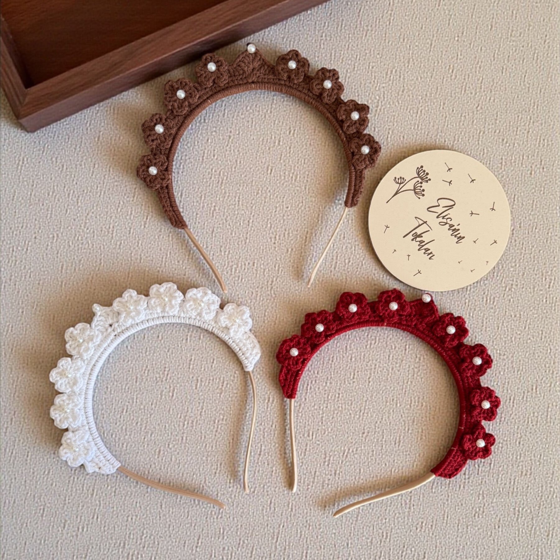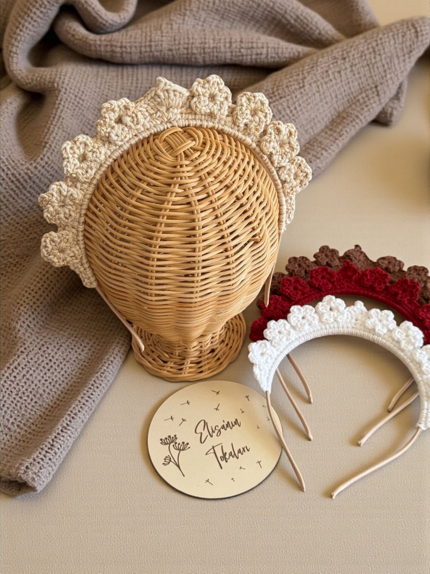 El Yapımı Örgü Çiçekli Taç – Pamuk İplik Saç Tacı | Çocuk & Yetişkin Uyumlu