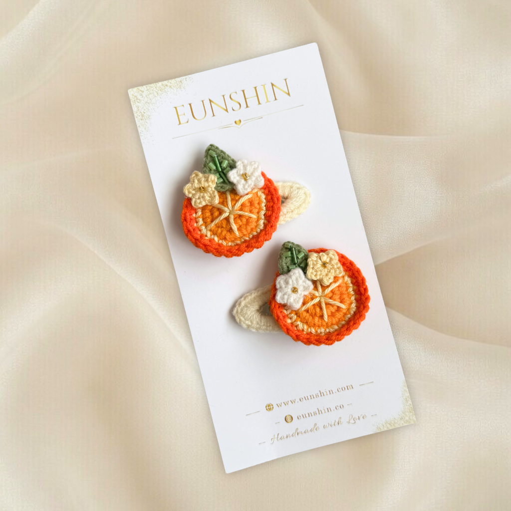 Sevimli portakal dilimi tasarımıyla hazırlanan bu el yapımı çıt çıt toka, enerjik ve neşeli görünümüyle saç stiline canlılık katar. Doğadan ilham alan tasarımı sayesinde hem günlük kullanım hem de özel gün kombinleri için eğlenceli bir tamamlayıcıdır.