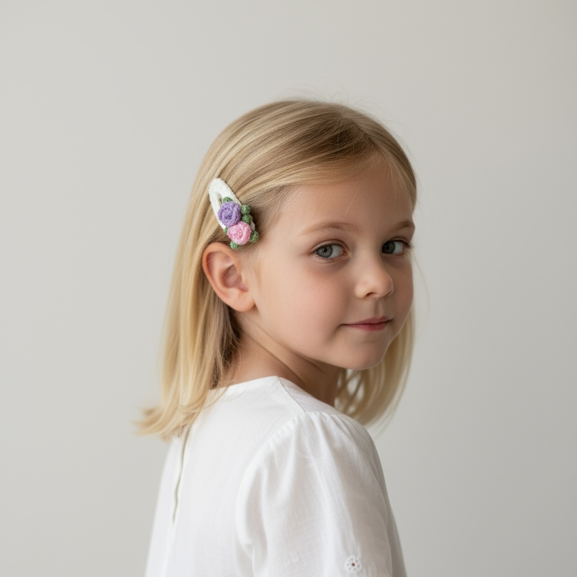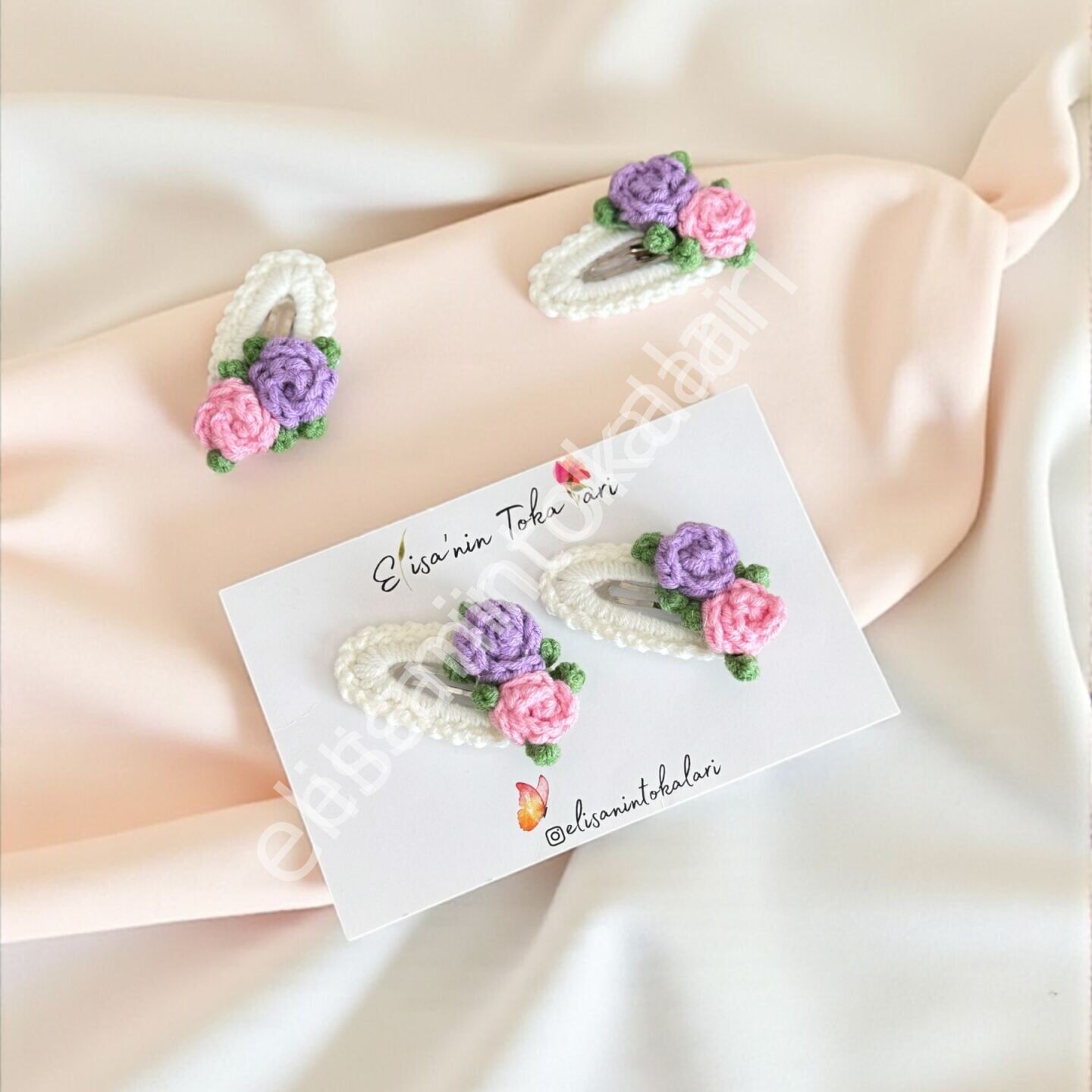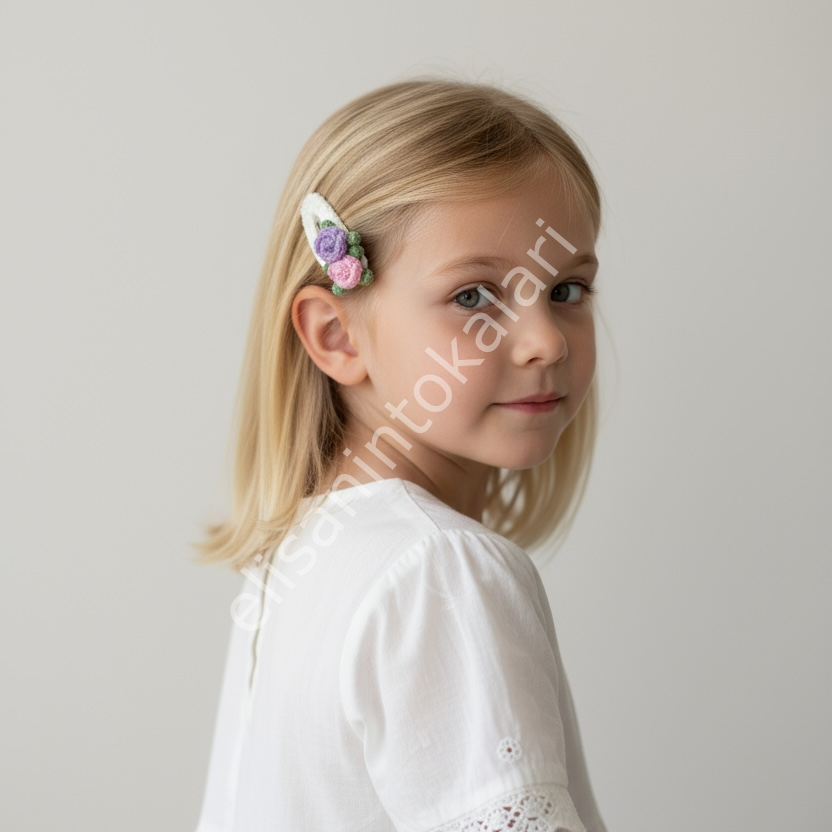 Pastel tonlarda el işçiliğiyle hazırlanan gül detaylı çıt çıt toka, saç stiline doğal ve zarif bir dokunuş katar. Mavi ve sarı çiçek kombinasyonu sayesinde bahar esintisi taşıyan bu tasarım günlük kullanım, özel günler ve hediye seçenekleri için mükemmeldir.
