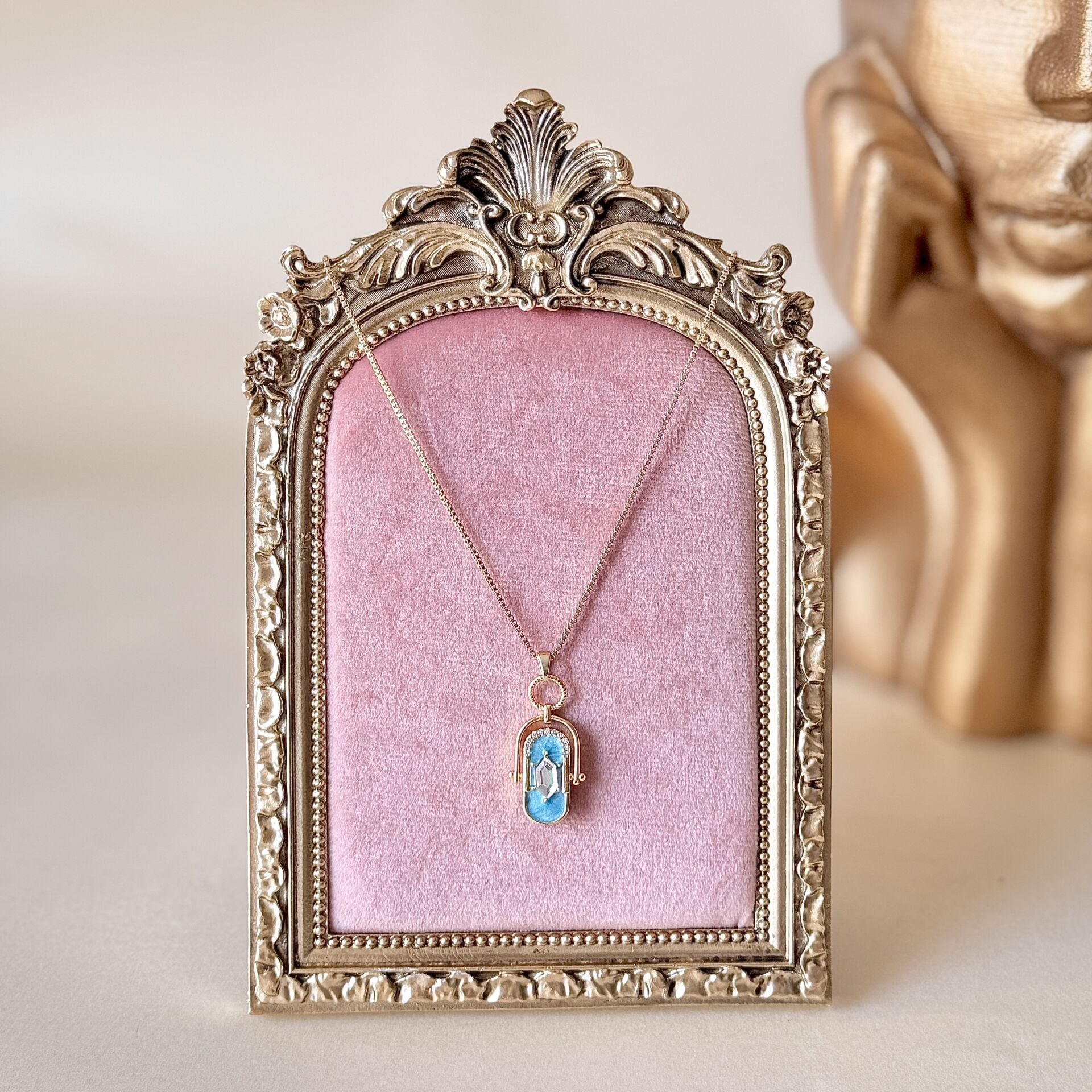 Dönen Taşlı Madalyon Kolye Mavi