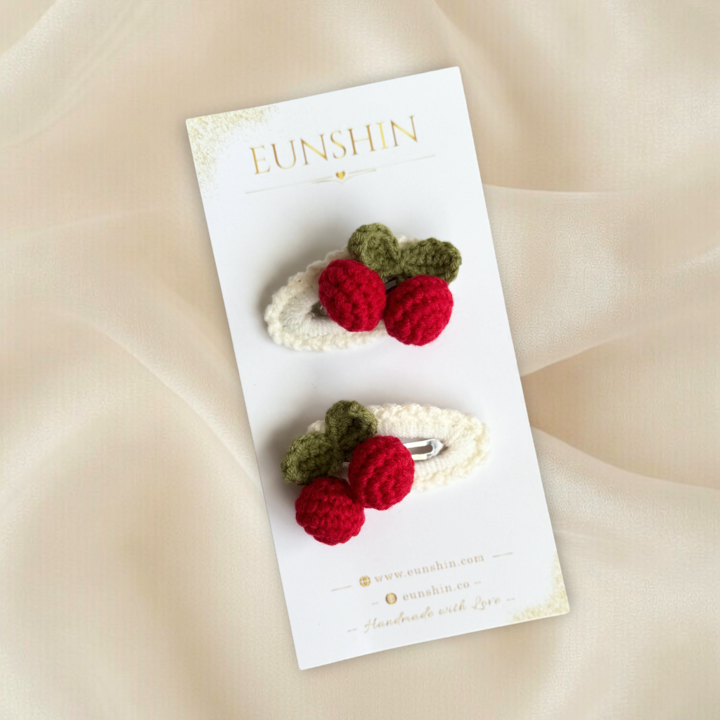 Sevimli kiraz formu ile hazırlanan bu el yapımı örgü toka, saçlara tatlı ve neşeli bir dokunuş kazandırır. Romantik ve doğal görünümü sayesinde günlük kullanımda zarif bir tamamlayıcı olurken, özel gün kombinlerine de şirin bir vurgu katar.