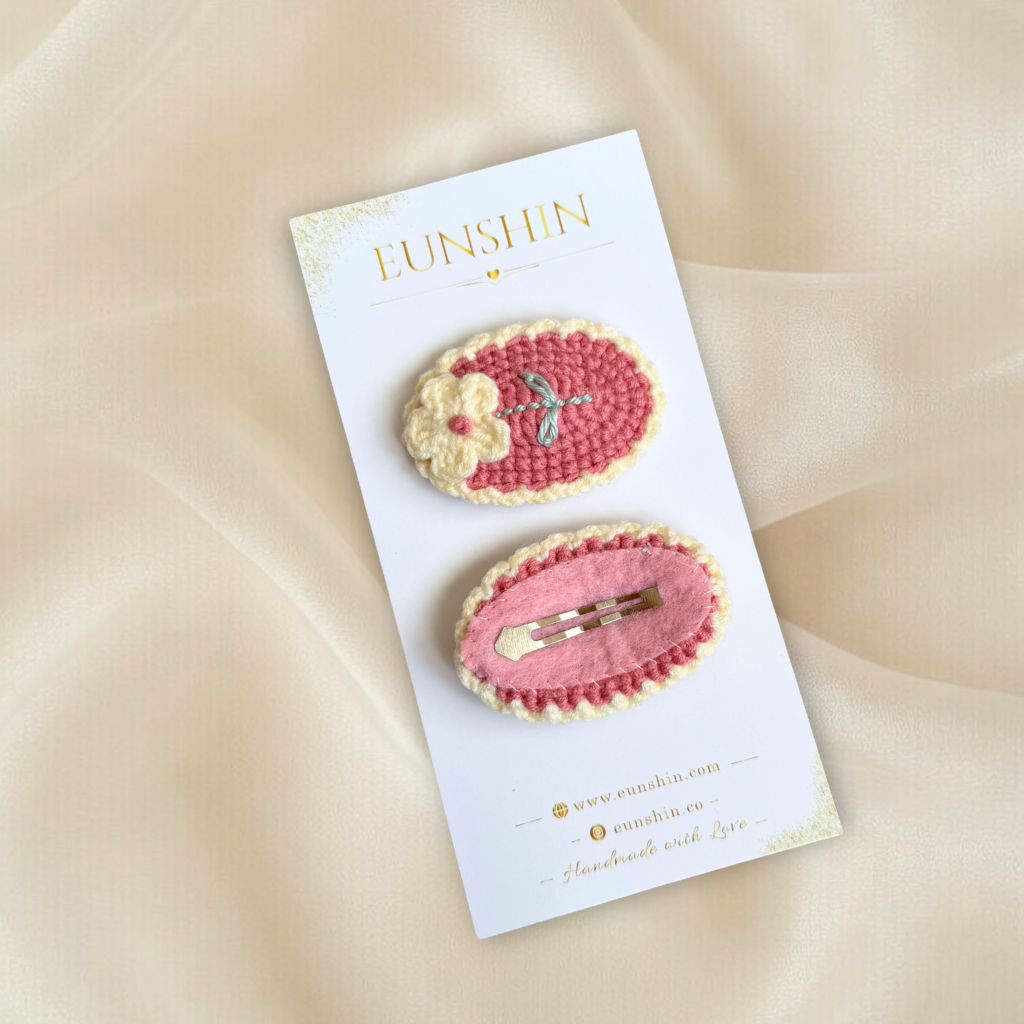 El Yapımı Papatya Objeli 5cm Çıtçıt Toka – Pastel Örgü Saç Tokası | Eunshin
