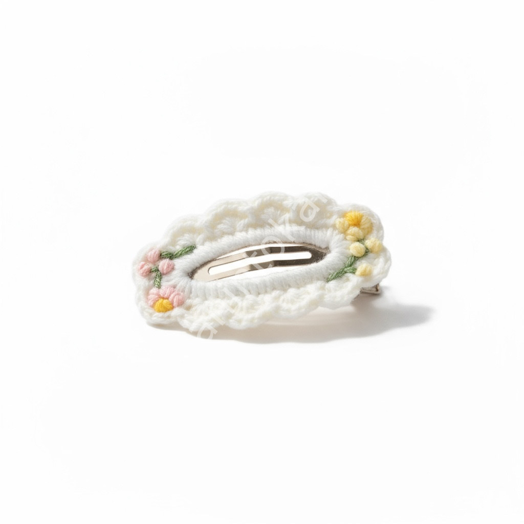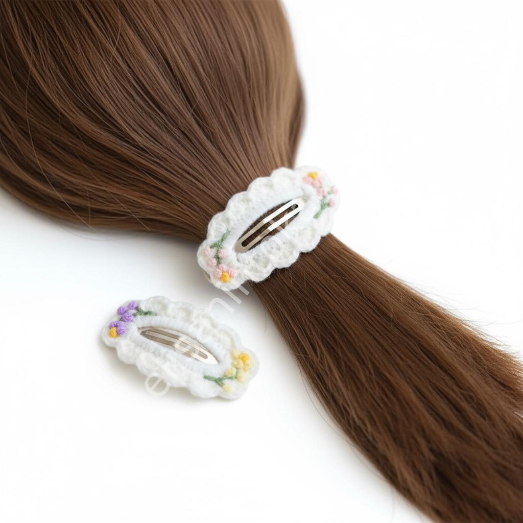 Nakış Detaylı El Yapımı Örgü Çıtçıt Toka – Minimal Çiçekli Saç Klipsi