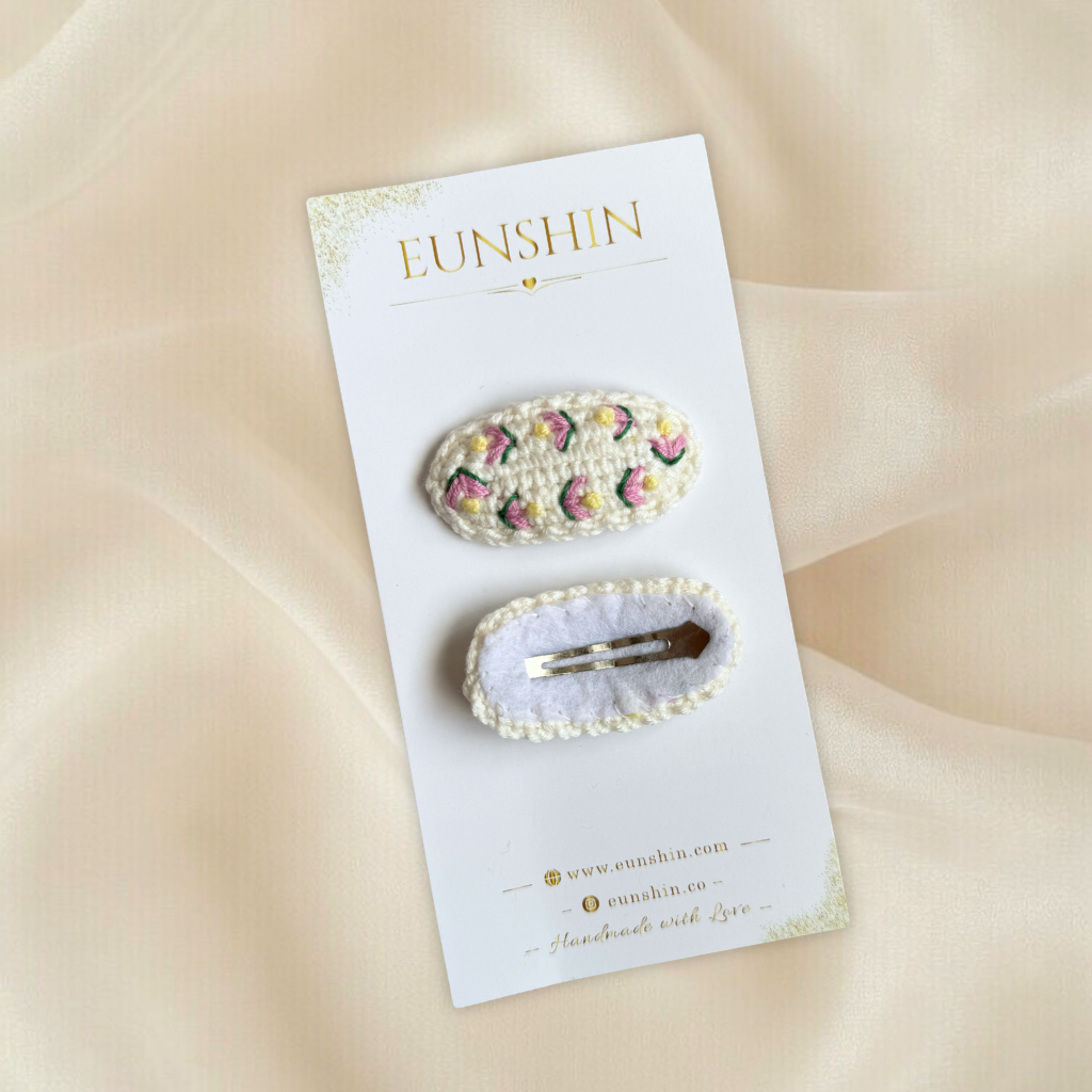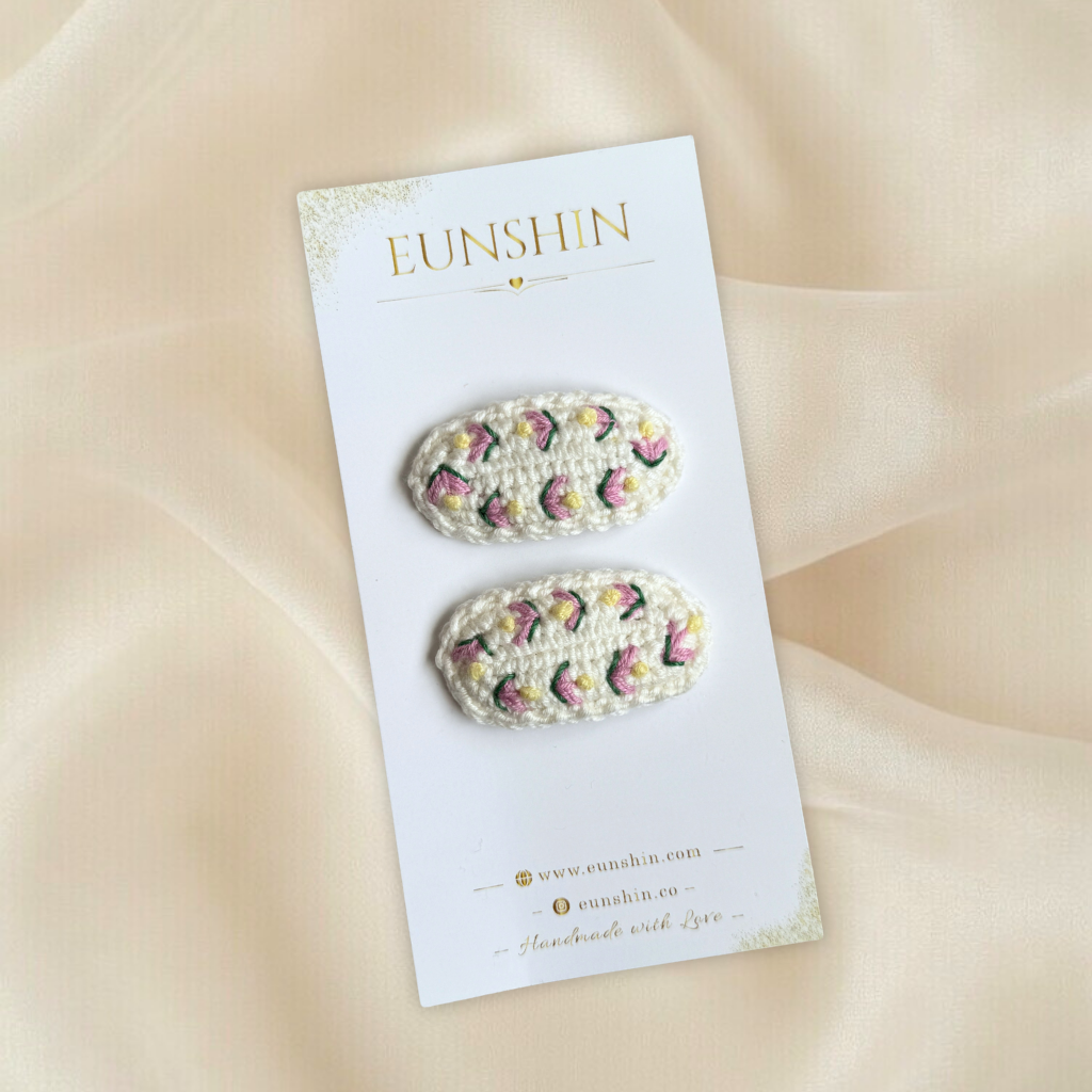 Zarif nakış detayları ve yumuşak renk geçişleriyle tasarlanan bu el yapımı örgü çıtçıt toka, sade ve doğal bir şıklık sunar.