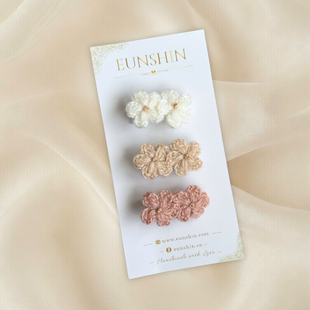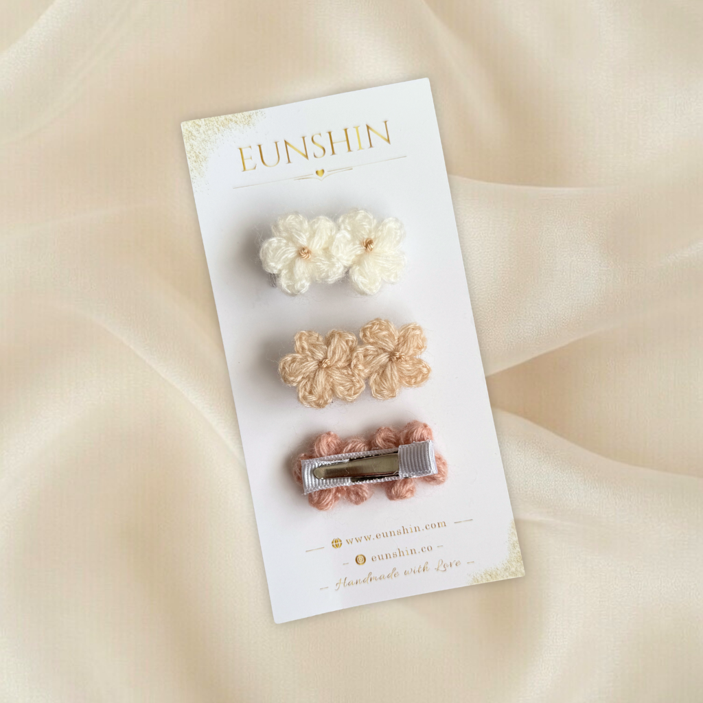 Gold Detaylı Papatya Klips Toka – El Örgüsü Çocuk Saç Tokası 4,5 cm
