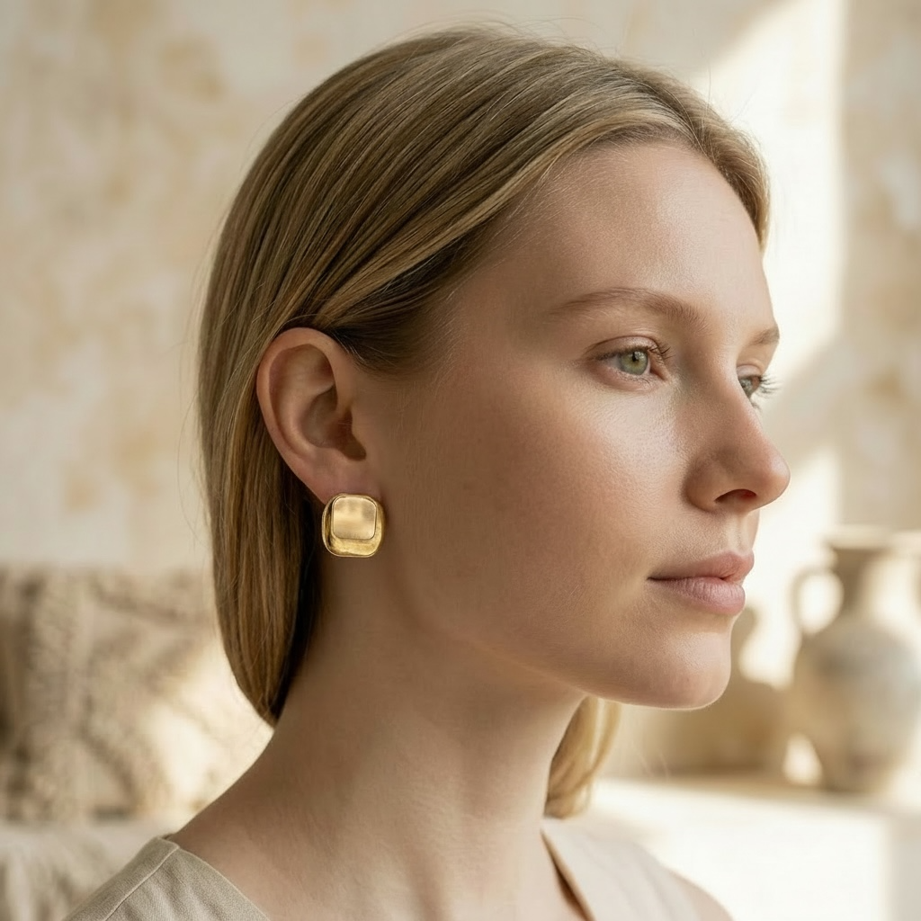 Gold Kare Küpe – Parlak Yüzey Şık Günlük & Kombin Küpesi
