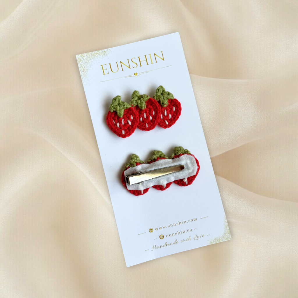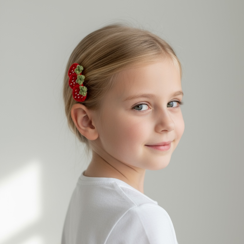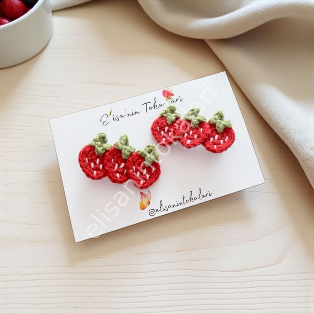 El Yapımı Çilek Figürlü Klips Toka 5 cm – Sevimli Örgü Saç Aksesuarı