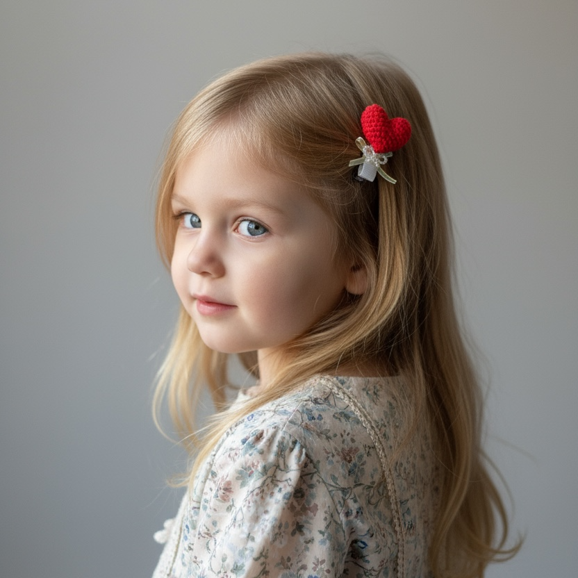 Kaliteli pamuk iplik ile hazırlanan amigurumi kalp detayı, dayanıklı klips toka üzerine sabitlenmiştir. Saçta kaymayı önleyen yapısı sayesinde güvenli tutuş sağlar ve saç tellerine zarar vermeden konforlu kullanım sunar.