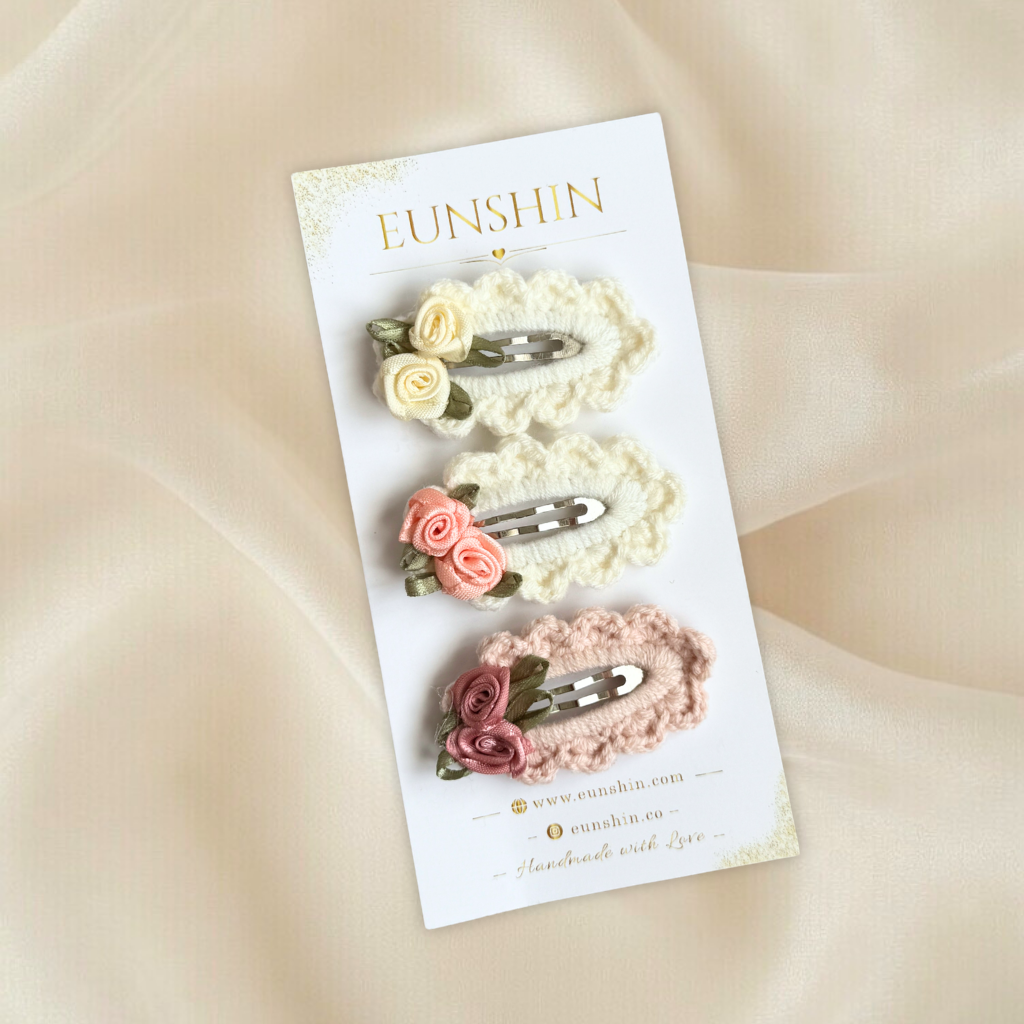 Romantik ve zamansız tasarımıyla öne çıkan saten gül detaylı vintage çıtçıt toka, saçlara zarif ve şık bir dokunuş katmak için özenle hazırlanmıştır. Örgü zemin üzerine yerleştirilen saten gül süslemeleri tasarıma klasik ve butik bir görünüm kazandırır.