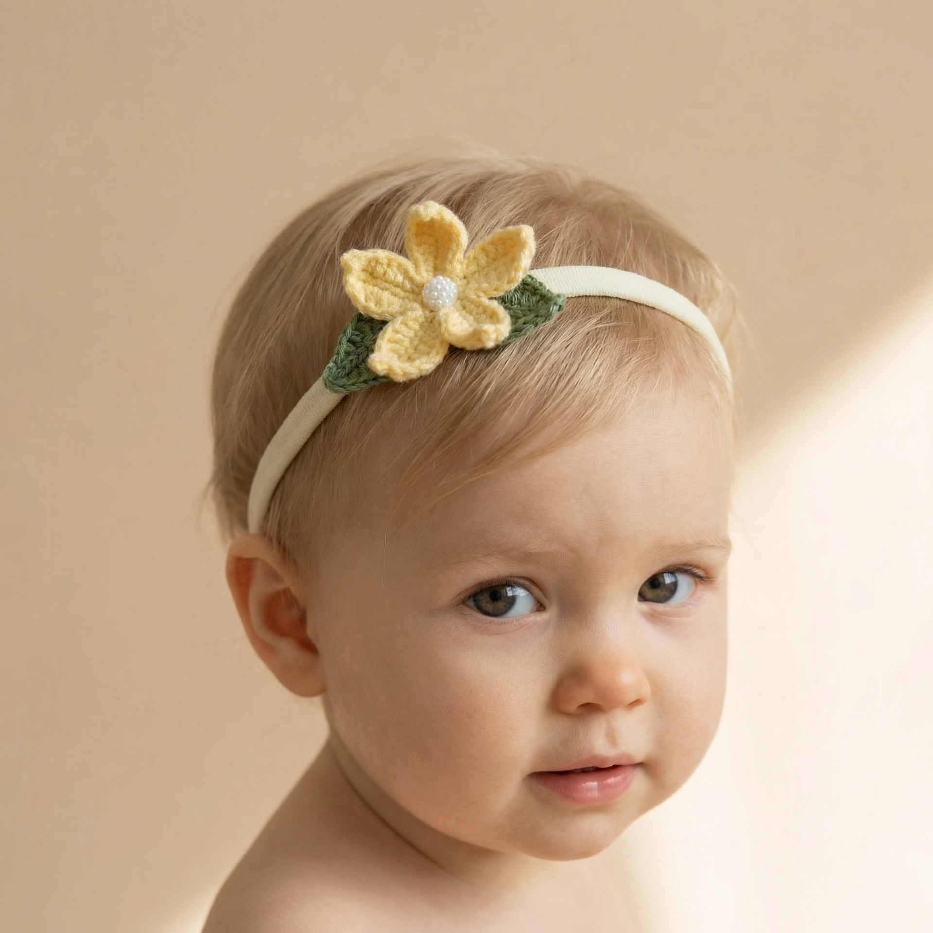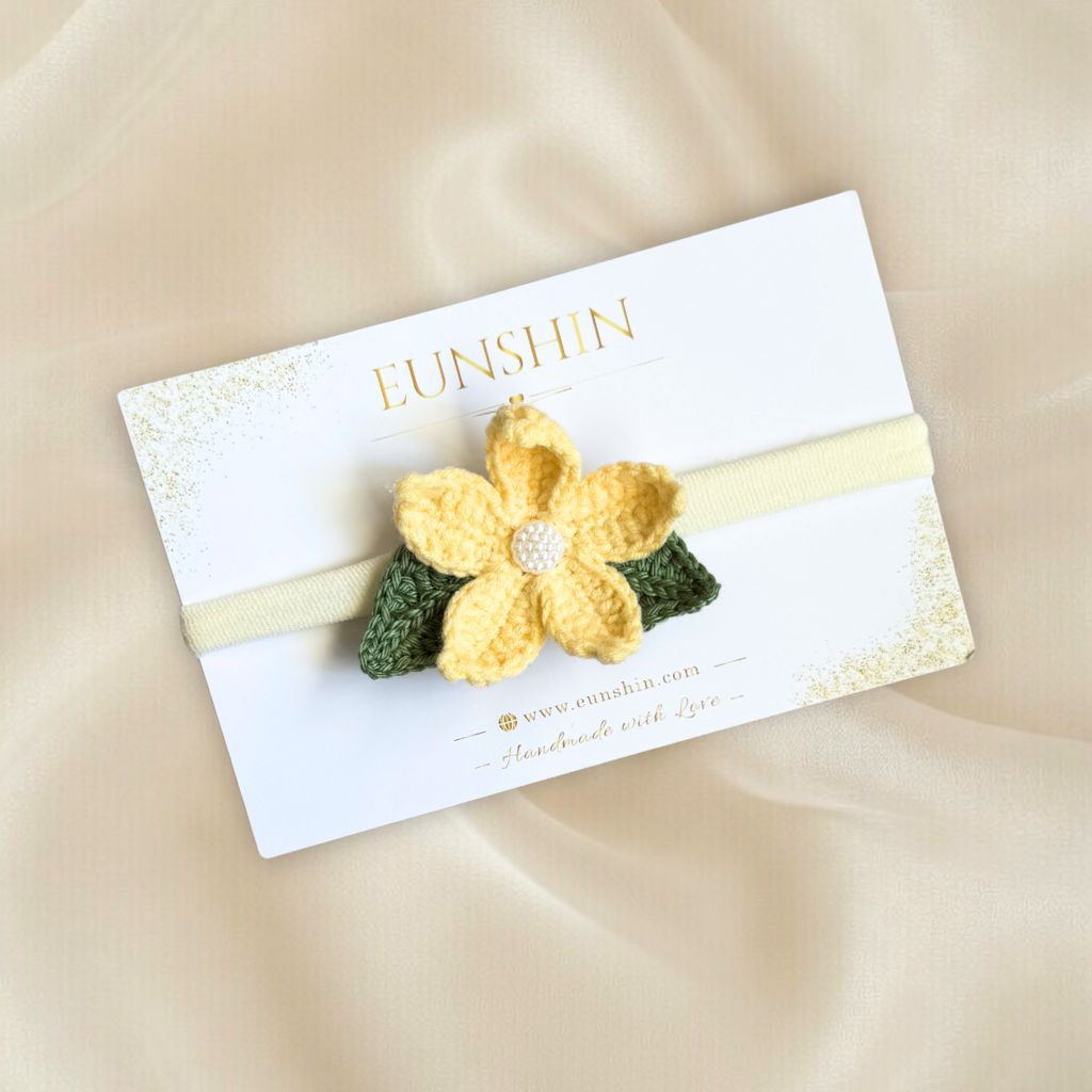 El Yapımı Çiçek Detaylı Bebek Saç Bandı – Yumuşak Esnek Bant | Eunshin