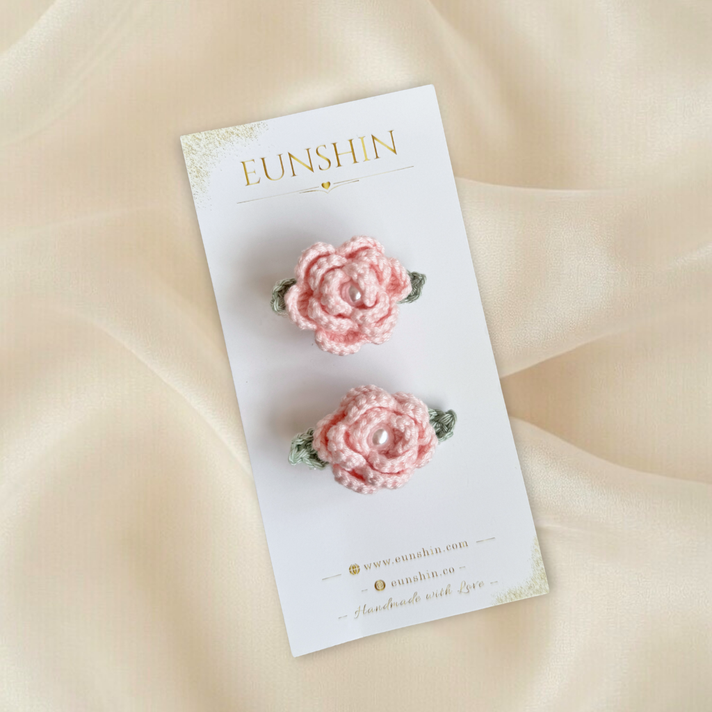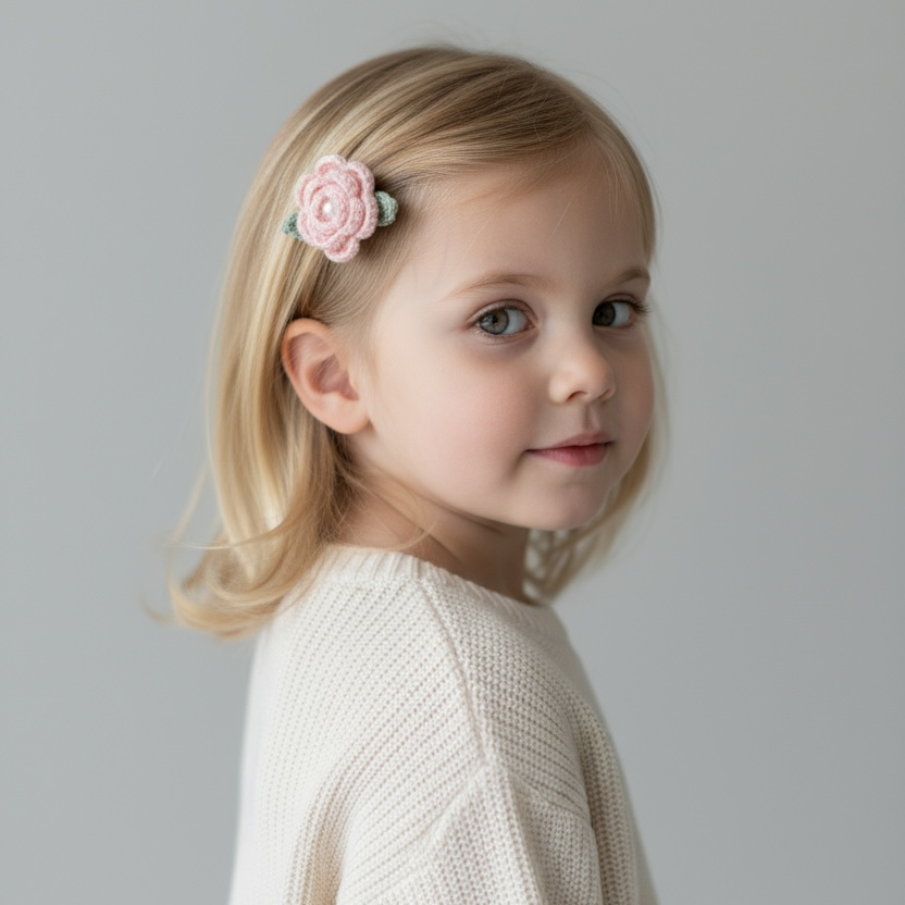 Zarif minik gül tasarımıyla hazırlanan el yapımı klips toka, romantik ve vintage bir stil sunar. Yumuşak örgü dokusu sayesinde hafif ve konforlu kullanım sağlar.