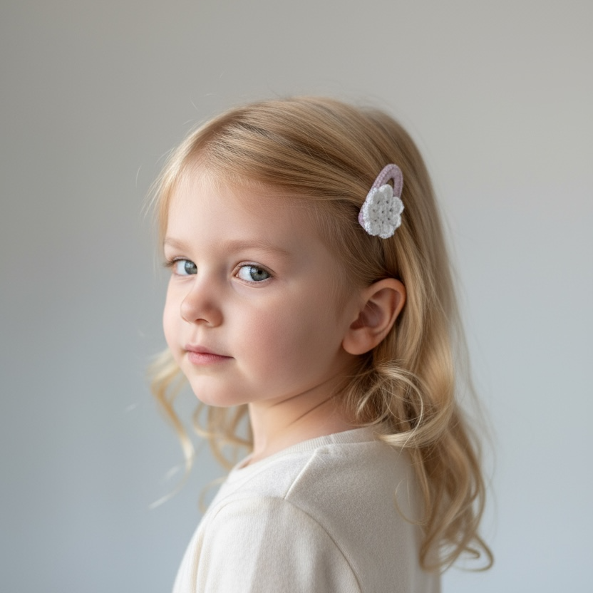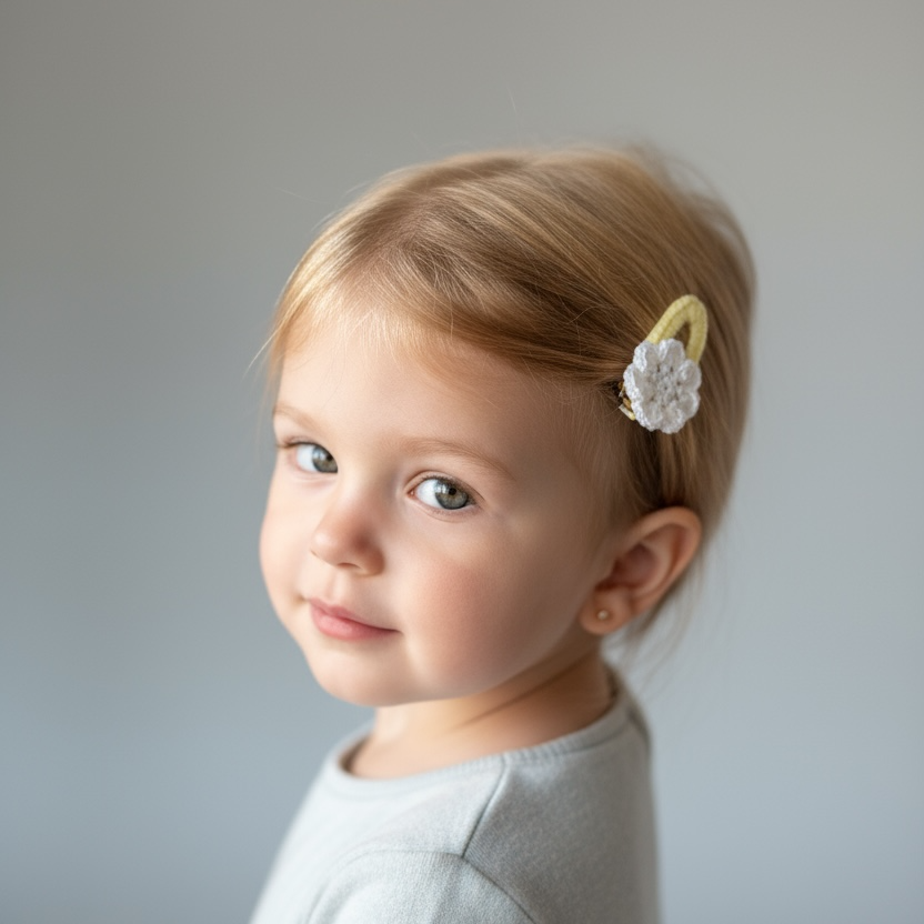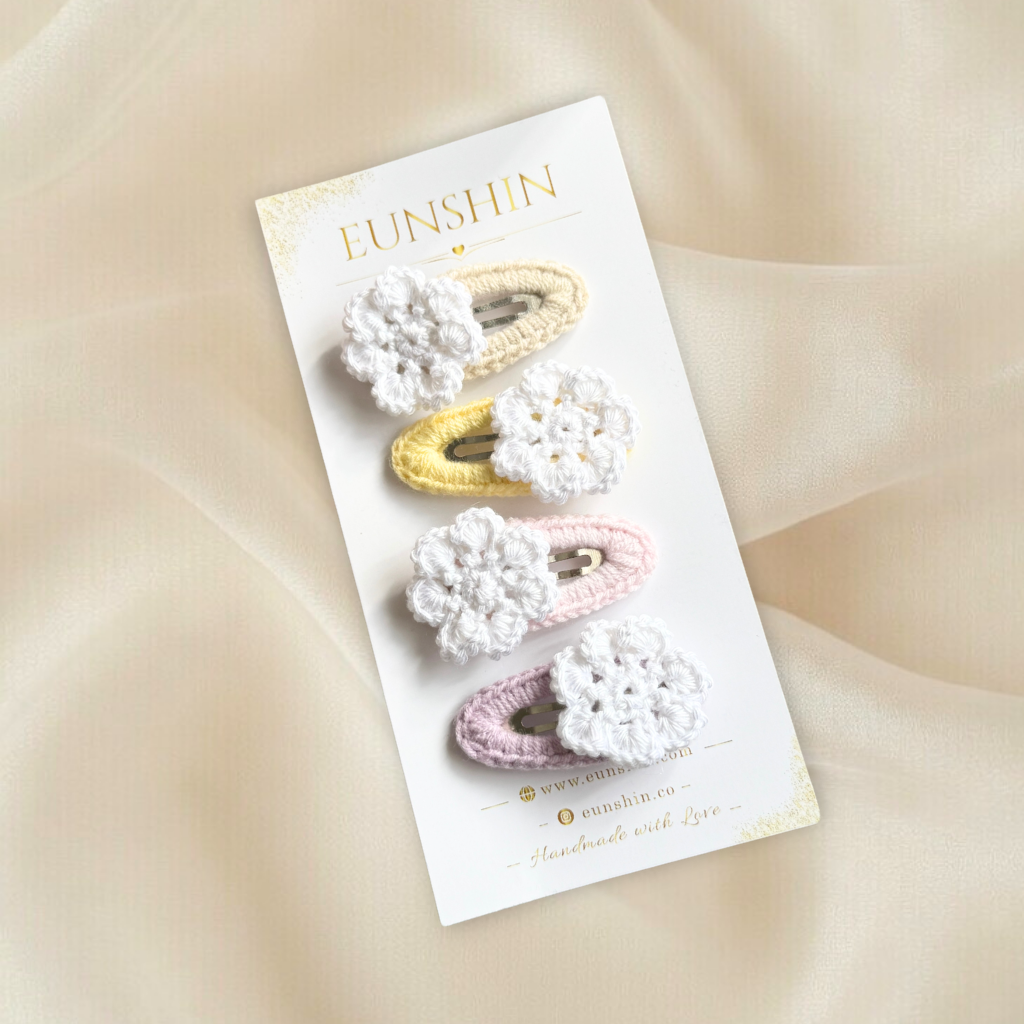 Örgü Çiçek Detaylı Çıt Çıt Toka – 5 cm El Yapımı Saç Tokası | 3 Renk Varyasyonlu Bebek & Kız Çocuk