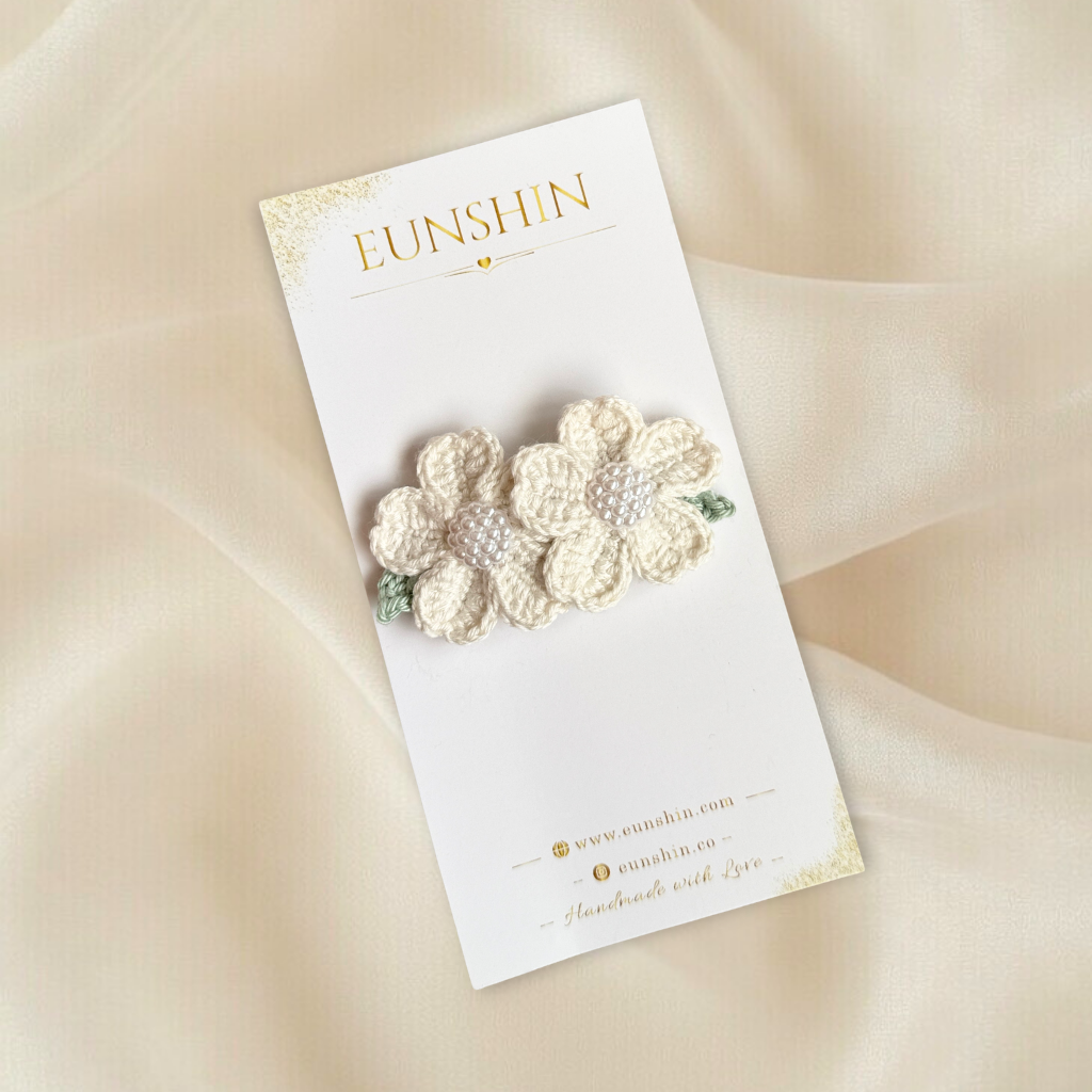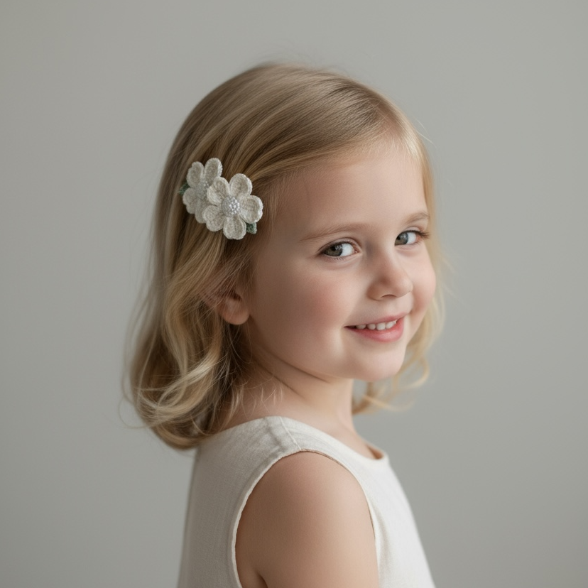 El Yapımı Beyaz Çiçek Tokası – Minimal & Şık Saç Aksesuarı