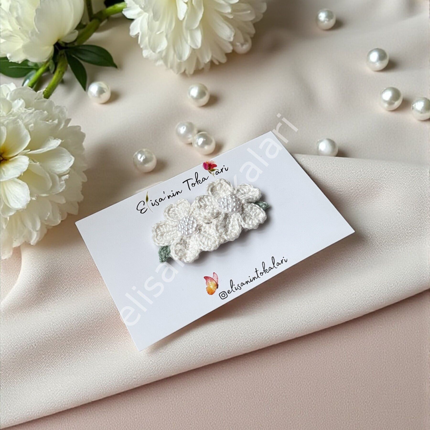 Zarif beyaz çiçek tasarımıyla hazırlanan el yapımı klips toka, sade ve şık görünümüyle her kombinle uyum sağlar. Minimal ve klasik stili sayesinde günlük kullanımda olduğu kadar özel günlerde de zarif bir tamamlayıcıdır.