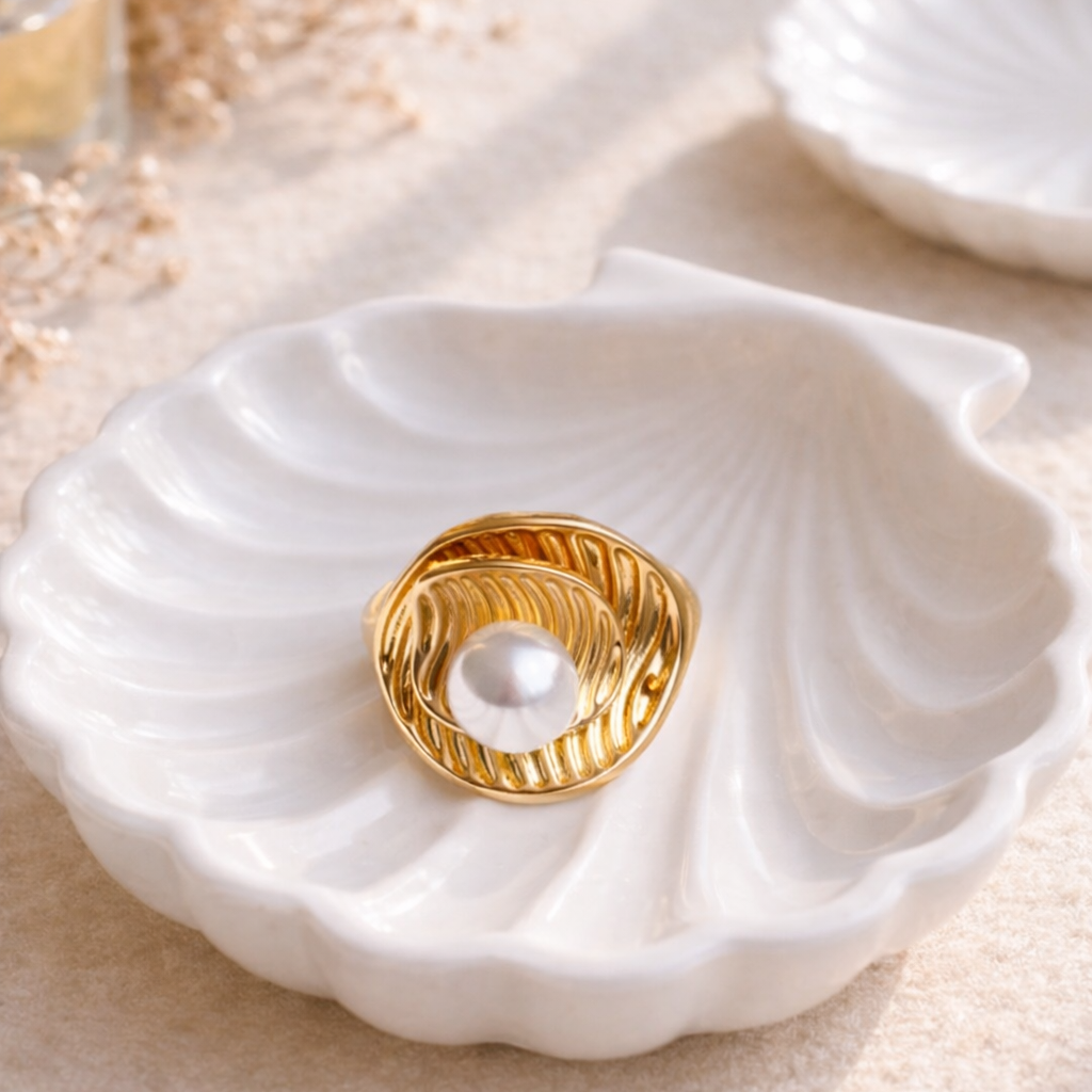 Zarif inci detayı ve modern formu ile tasarlanan bu çelik yüzük, sade şıklığı güçlü bir duruşla buluşturur. Paslanmaz çelik üzeri gold kaplama yapısı sayesinde uzun süre parlaklığını korur ve dayanıklı kullanım sunar. Ayarlanabilir açık formu ile farklı parmak ölçülerine kolayca uyum sağlar. İnci detayı sayesinde klasik ve modern tarzı bir araya getiren bu tasarım, günlük kombinlerden özel davetlere kadar her stile uyum sağlar. EUNSHIN’in zarif ve lüks çizgisini yansıtan özel bir parçadır.