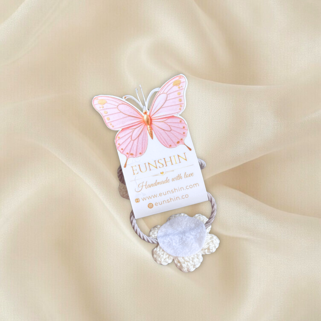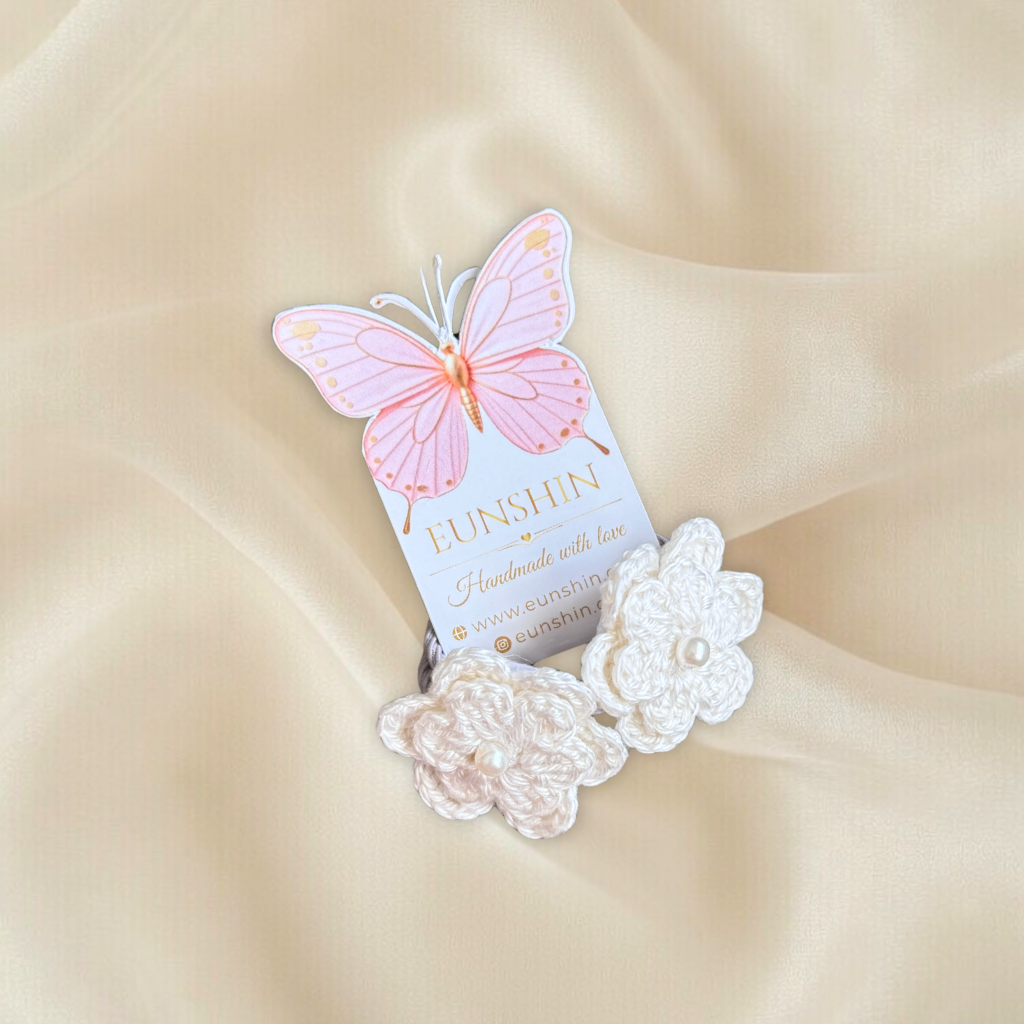 Tamamen el emeği ile hazırlanan bu çift kat papatya örgü çocuk lastik toka, zarif inci detayı ve sevimli tasarımı ile çocukların saçlarını süsleyen şık bir aksesuardır.