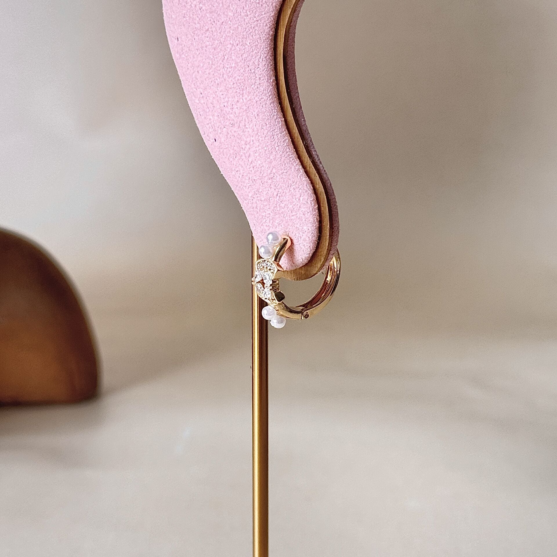 İnci Detaylı Zirkon Halka Küpe 14K Gold Kaplama