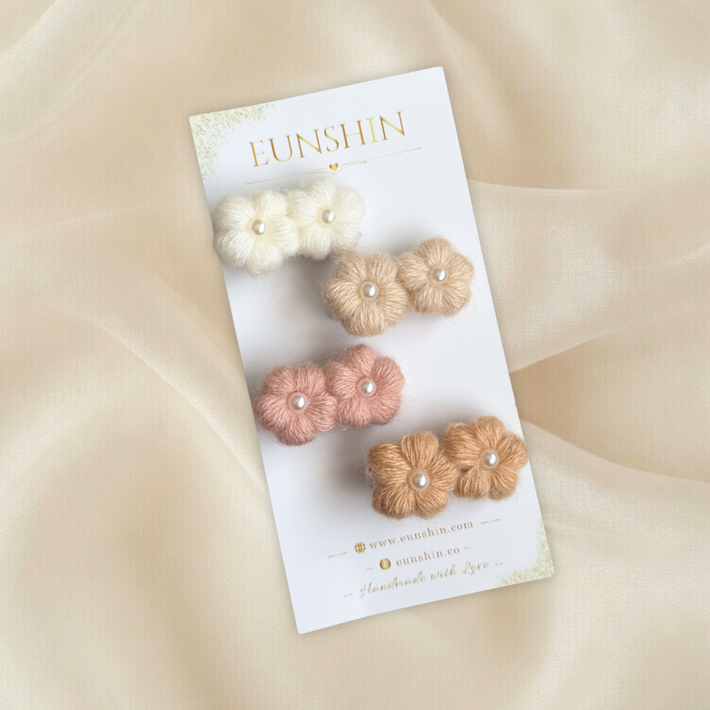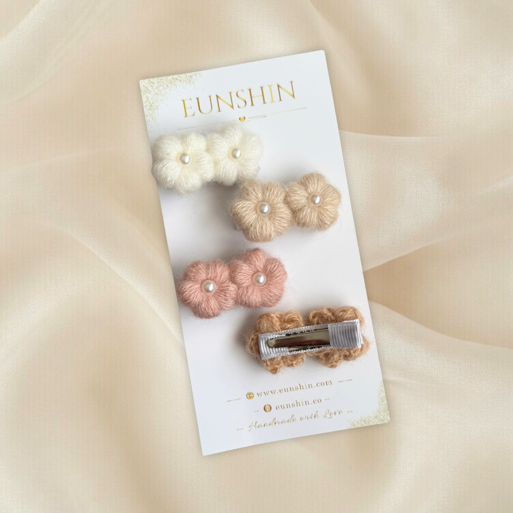 Puff İncili Papatya Klips Toka – El Örgüsü Çocuk Saç Tokası 4,5 cm