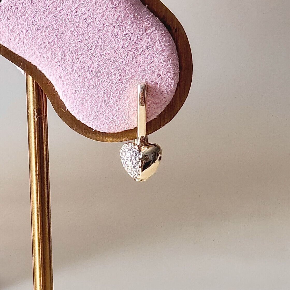 Zarif kalp formu ve ışığı yumuşak yansıtan zirkon taş detaylarıyla tasarlanan gold kaplama küpe, sade ama anlamlı bir şıklık sunar. Minimal halka formu ile birleşen kalp detayı, günlük kullanıma uygun modern bir görünüm oluşturur.