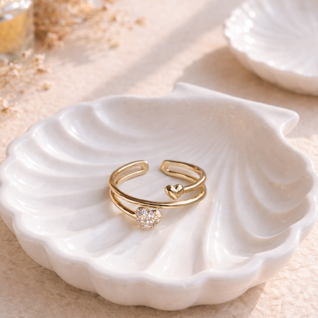 Zarif kalp formu ve ışıltılı zirkon taş detayıyla tasarlanan bu çelik yüzük, romantik ve modern bir stil sunar. Paslanmaz çelik üzeri gold kaplama yapısı sayesinde uzun süre parlaklığını korur ve dayanıklı kullanım sağlar. Ayarlanabilir açık formu ile farklı parmak ölçülerine kolayca uyum sağlar. Minimal ama dikkat çekici tasarımıyla günlük kombinlerde zarif bir dokunuş, özel anlarda ise anlamlı bir tamamlayıcı olarak öne çıkar. EUNSHIN’in modern ve lüks çizgisini yansıtan özel bir tasarımdır.