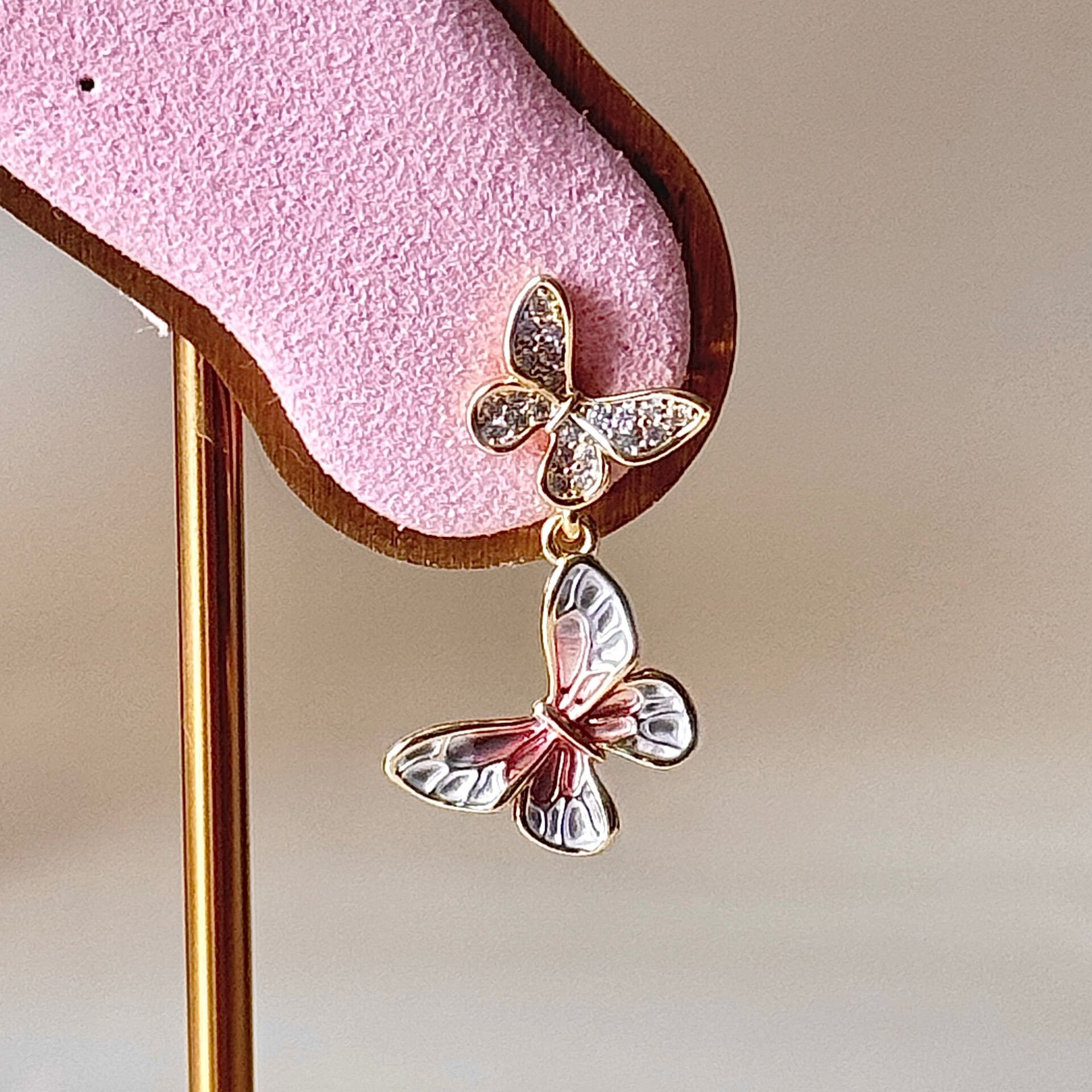 Kelebek Figürlü Sallantılı Küpe 14K Gold Kaplama