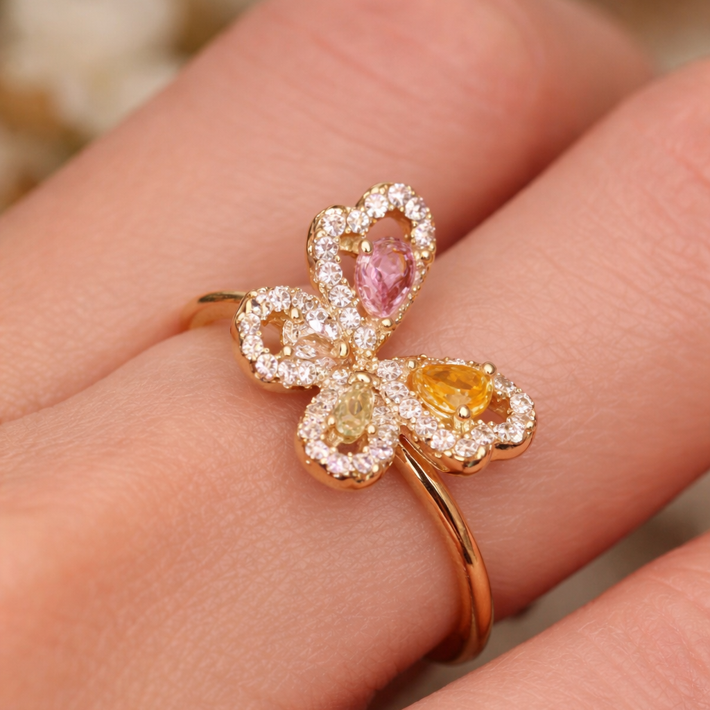 Kelebek Ayarlanabilir Zirkon Taşlı Gold Yüzük