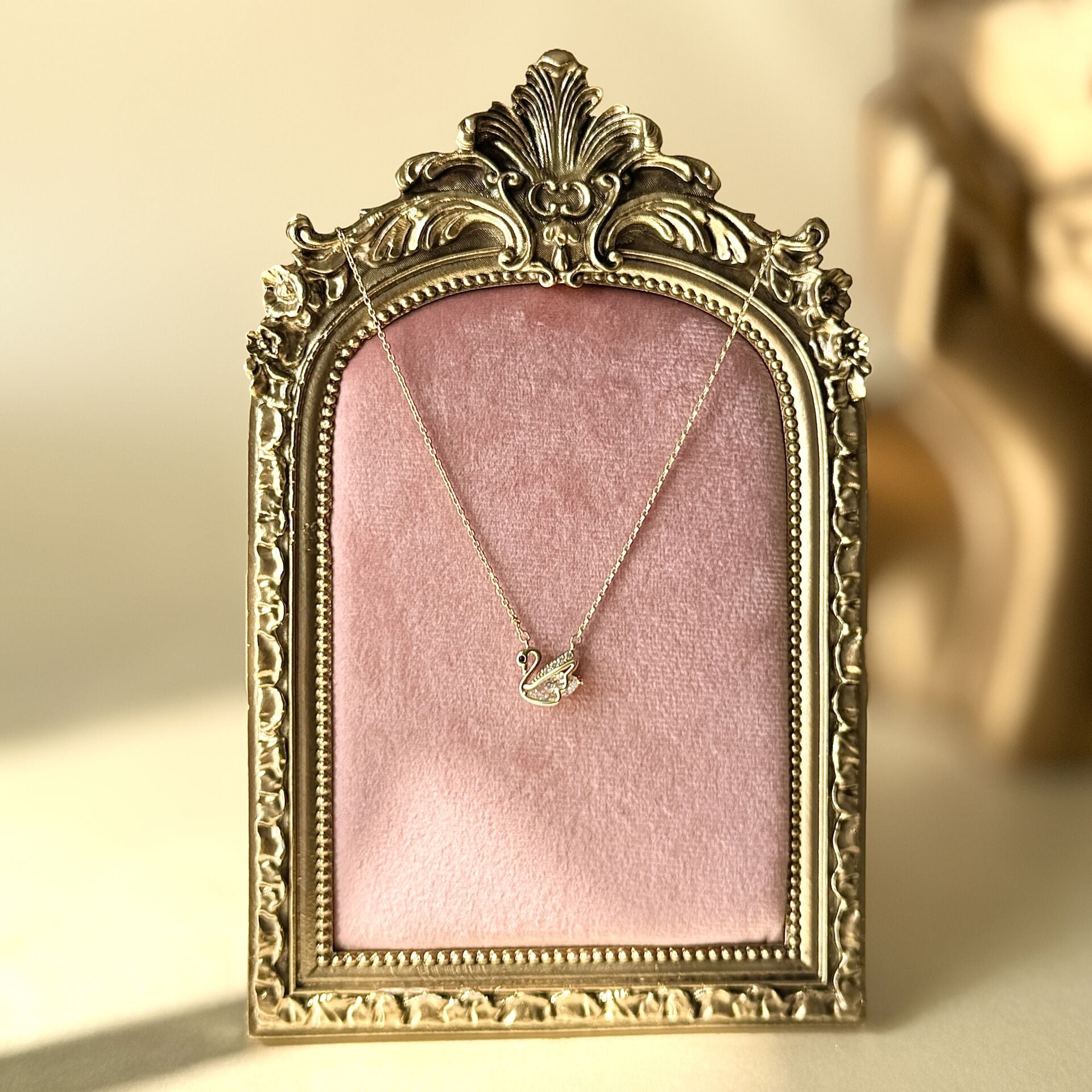 Zarafet ve inceliğin simgesi kuğu formundan ilham alan gold kaplama kolye, minimal tasarımıyla şık ve dikkat çekici bir görünüm sunar. Zirkon taş detaylı yüzeyi ışığı yumuşak yansıtarak sade kombinlere zarif bir ışıltı katar.