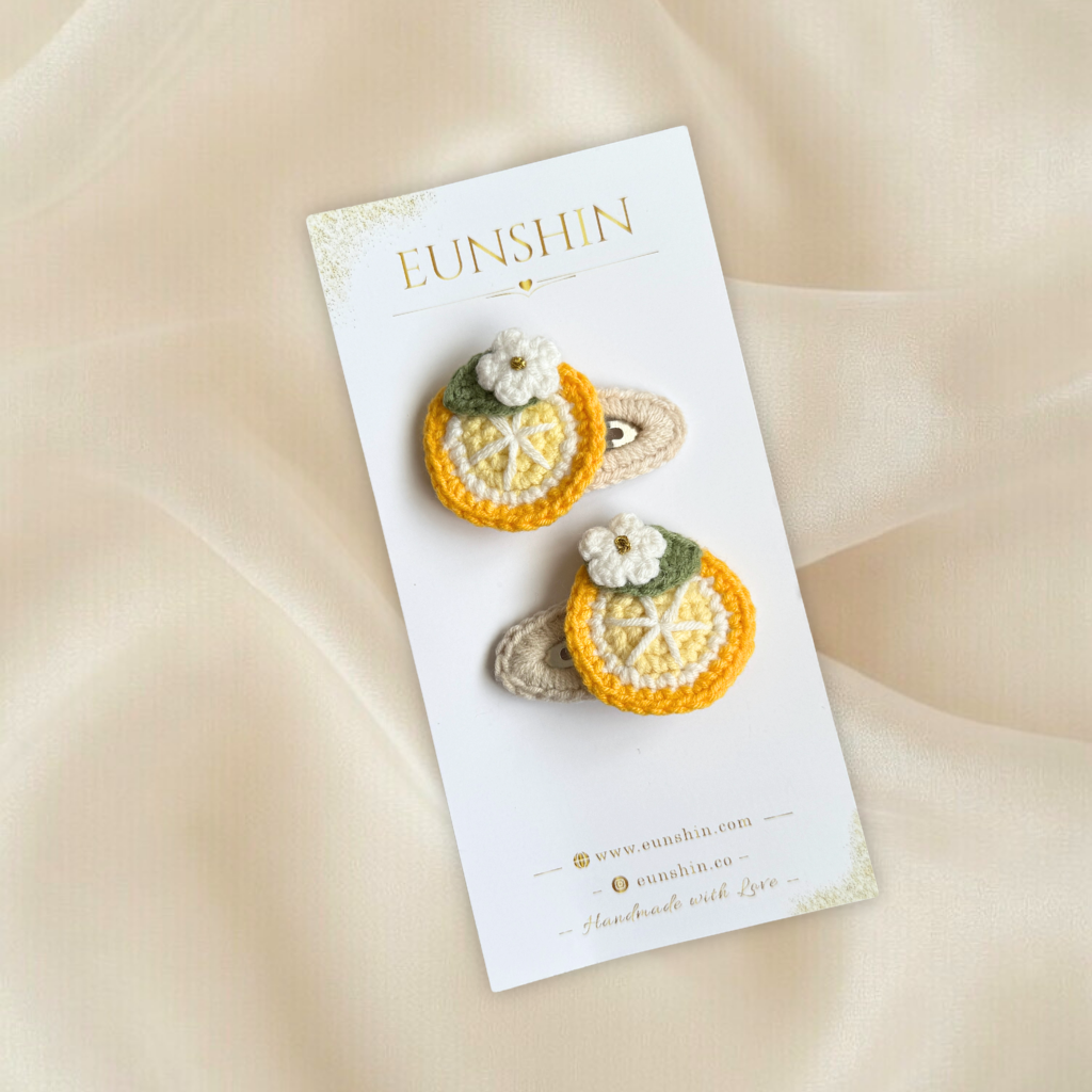 El örgüsü limon dilimi ve çiçek detaylarıyla tasarlanan bu saç tokası, yazın enerjisini ve doğallığını miniklerin stiline taşır. Canlı sarı tonları ve zarif çiçek dokunuşu sayesinde neşeli ve dikkat çekici bir görünüm sunar.