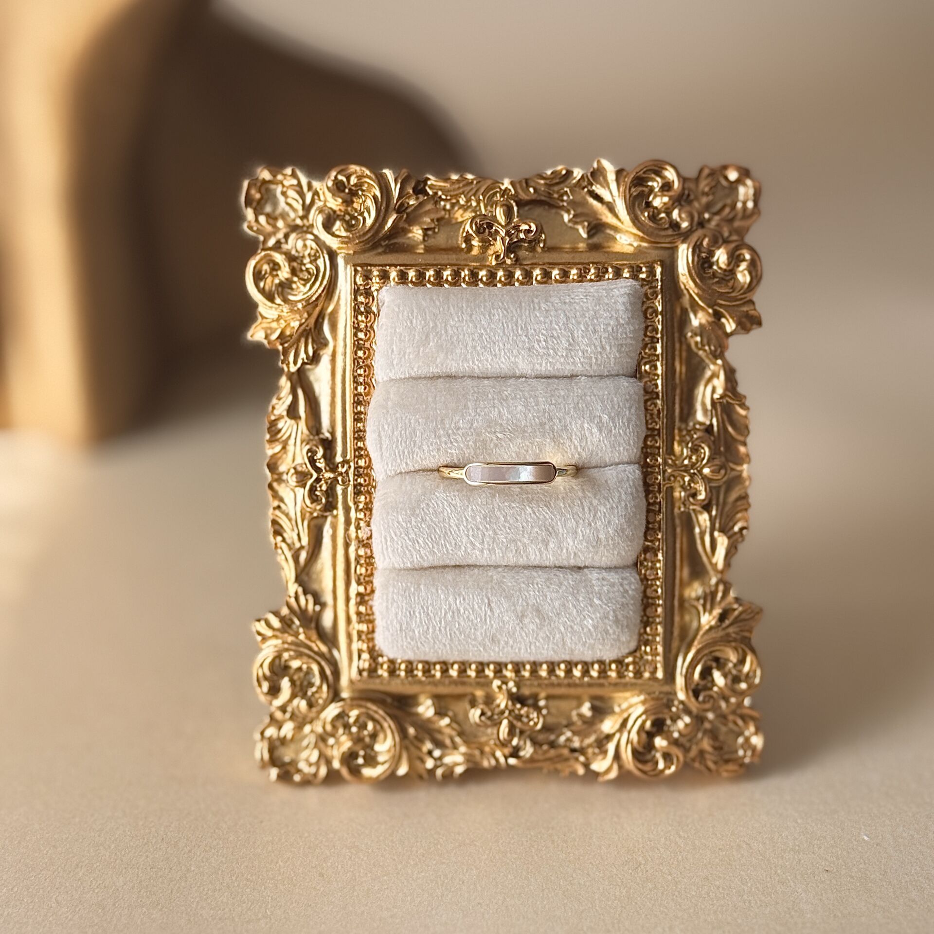 Minimal Sedef Taşlı Gold Kaplama Yüzük Ayarlanabilir Pirinç Yüzük