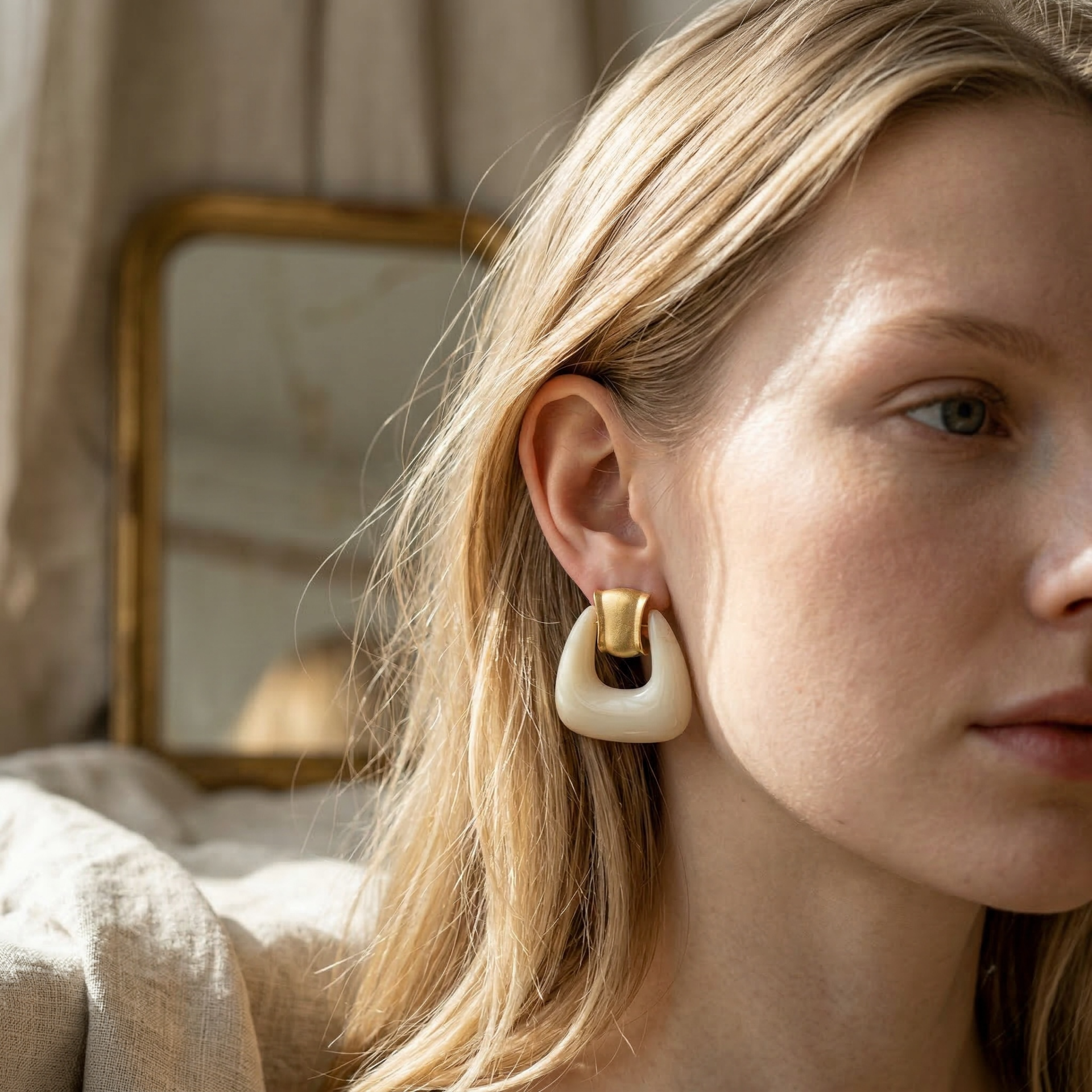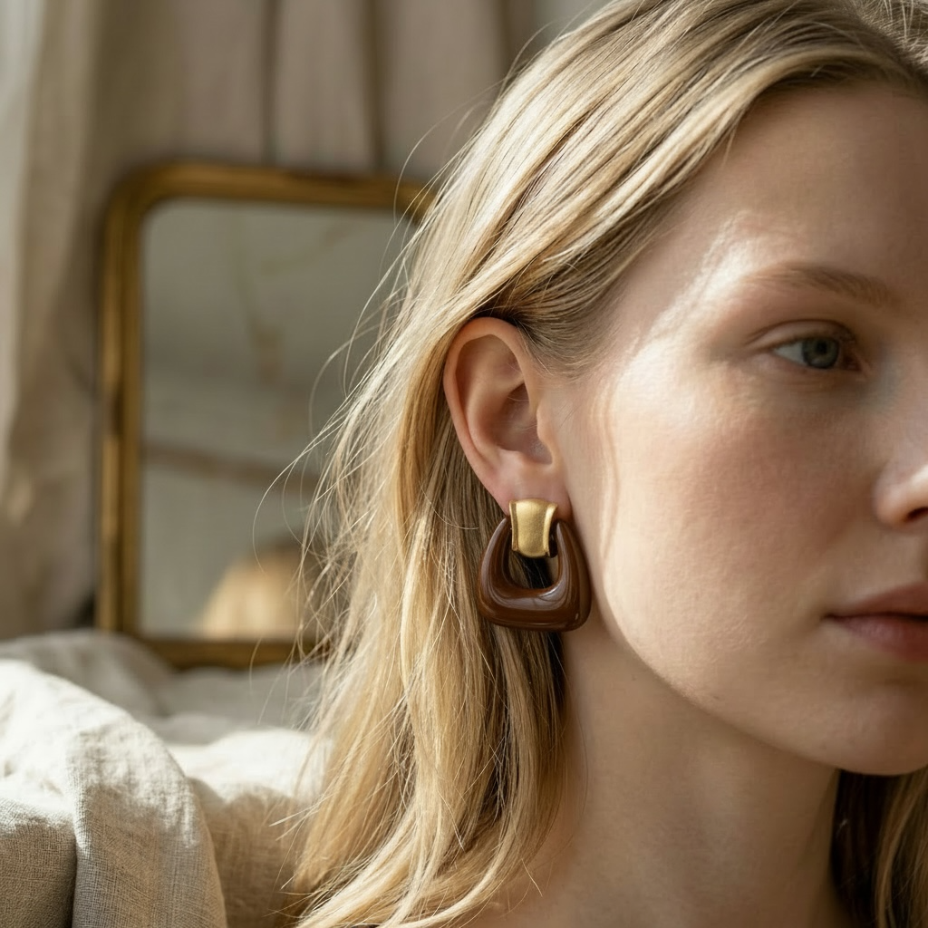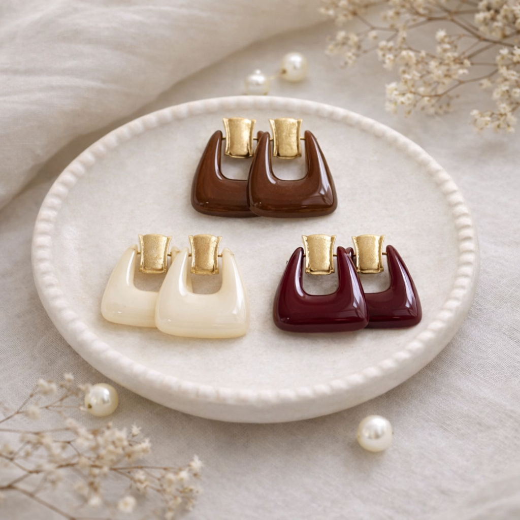 Modern Form Küpe Gold (Krem, Kahve, Bordo)