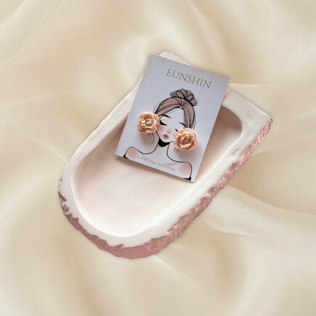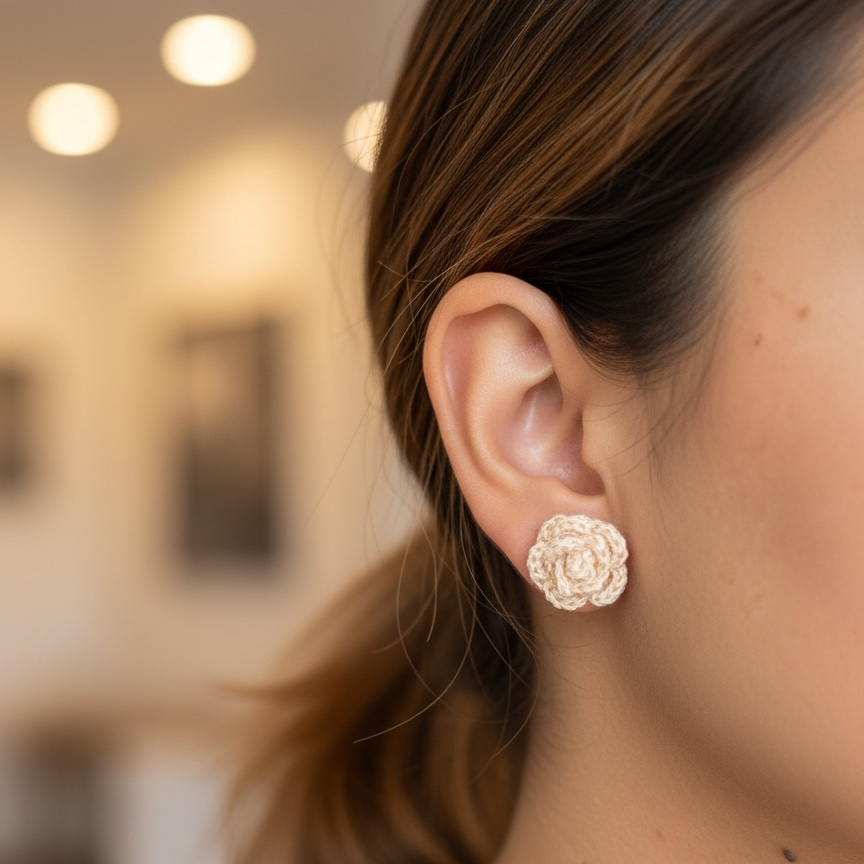 Örgü Gül Küpe Pirinç– El Yapımı Çiçek Küpe