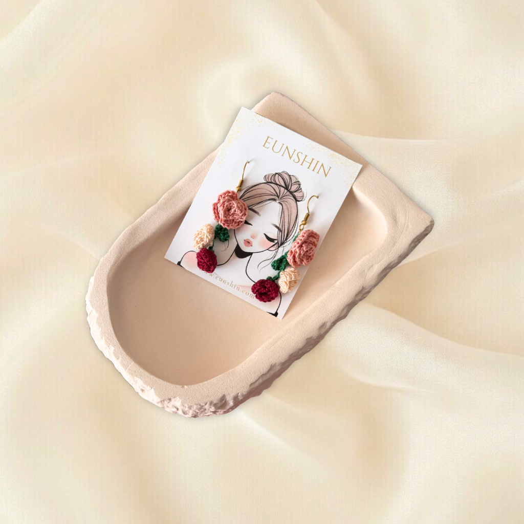 Örgü Güller Sarkıntılı Küpe Pirinç– El Yapımı Çiçek Küpe