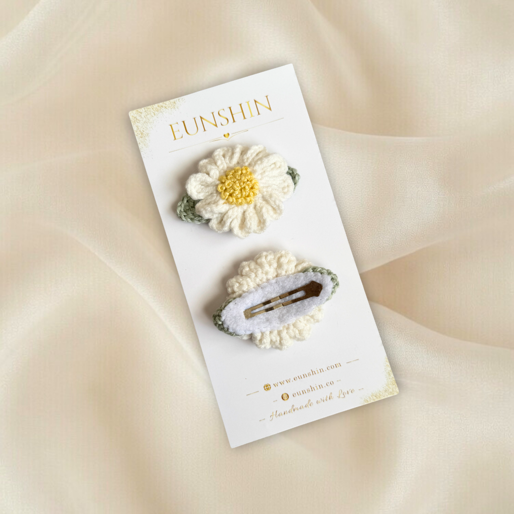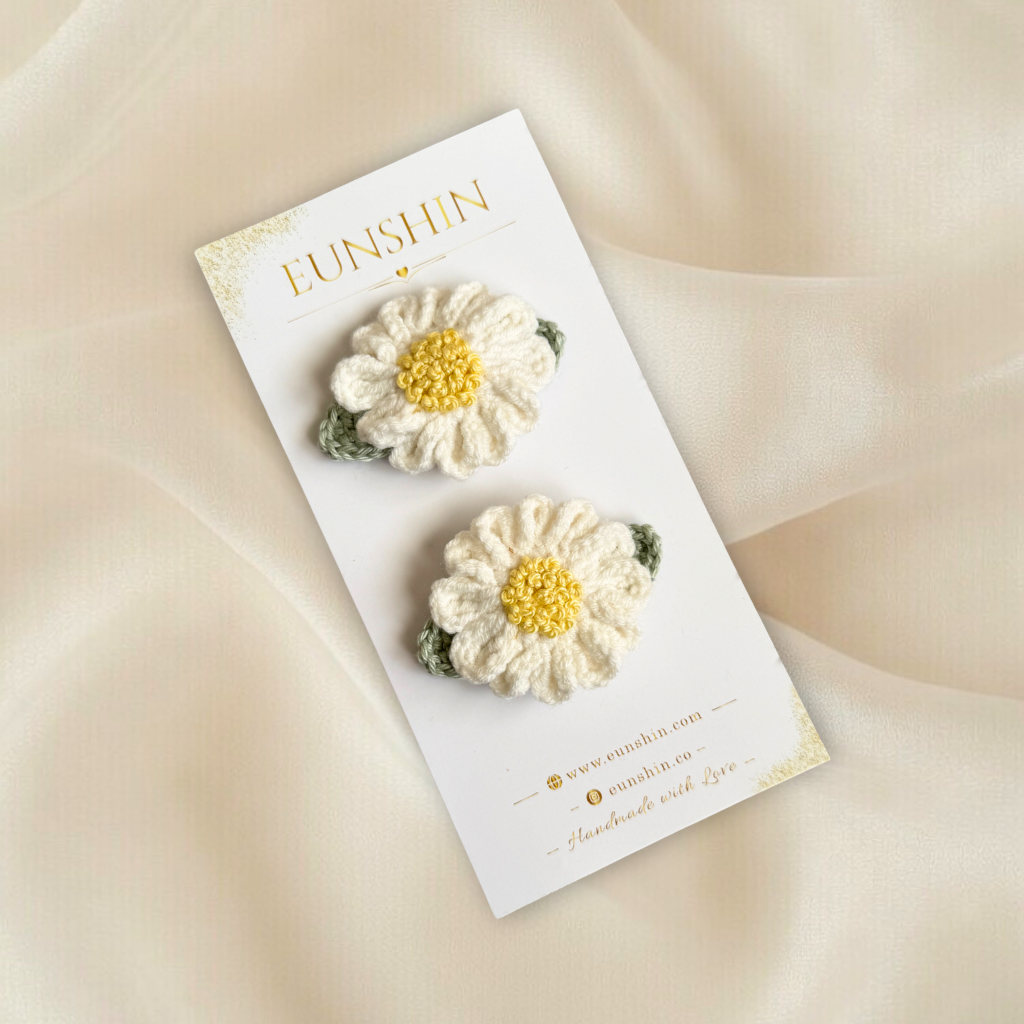 El Yapımı Papatya Çıtçıt Toka – Örgü Çiçek Saç Tokası | Eunshin