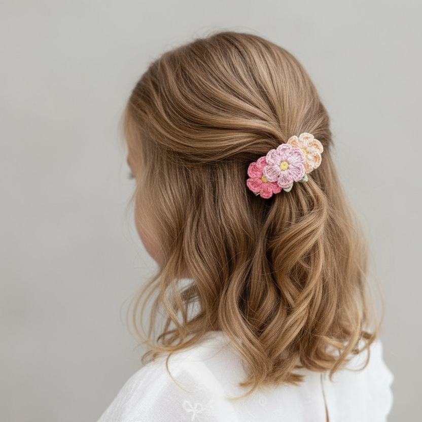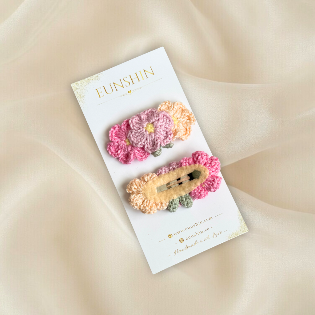 Pastel Çiçekli Örgü Çıtçıt Toka | El Yapımı Romantik Saç Aksesuarı