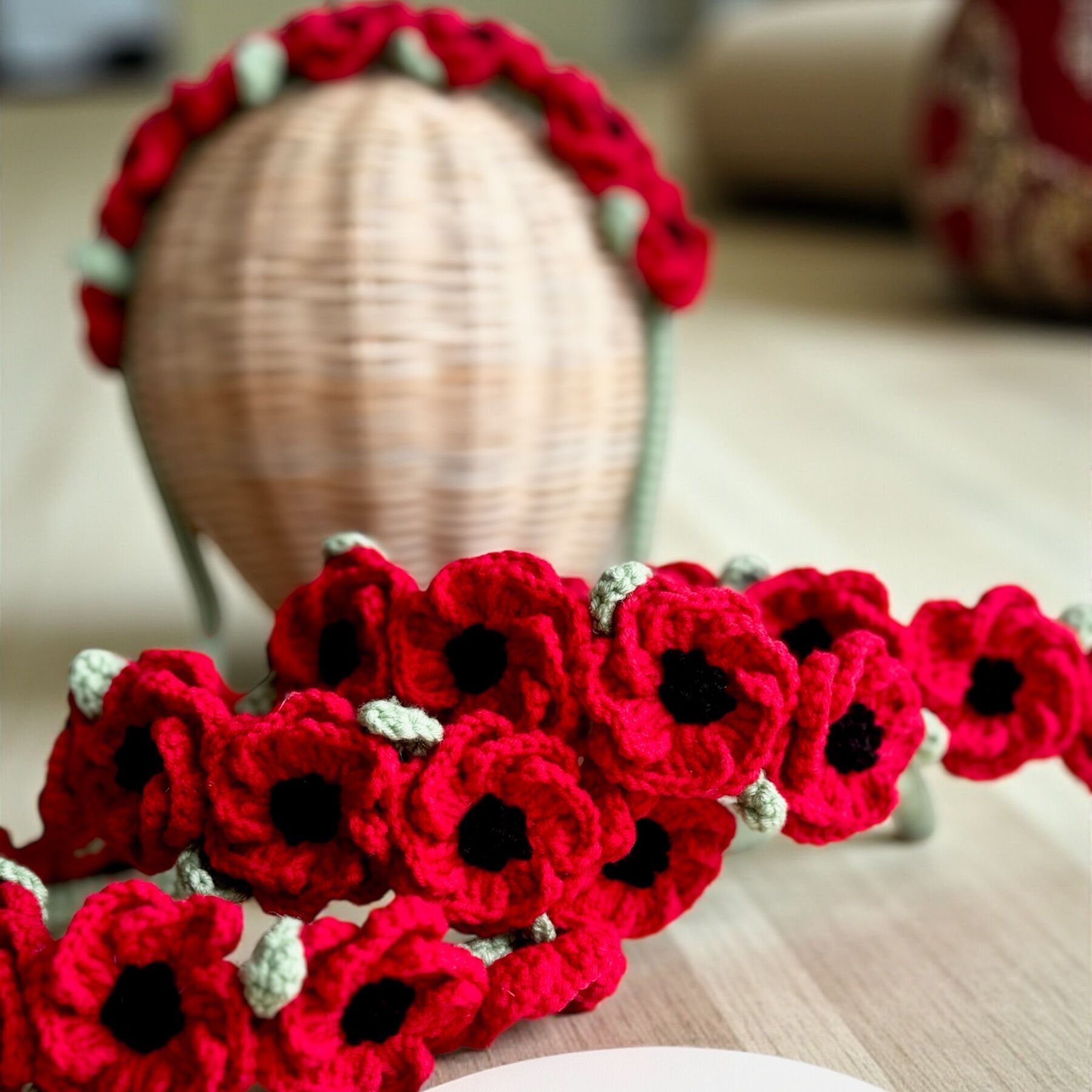 Gelincik çiçeklerinin zarif ve doğal güzelliğinden ilham alınarak tasarlanan bu el yapımı saç tacı, romantik ve göz alıcı bir görünüm sunar. Canlı kırmızı çiçek detayları sayesinde stilinize doğadan gelen sıcak ve enerjik bir dokunuş katar.