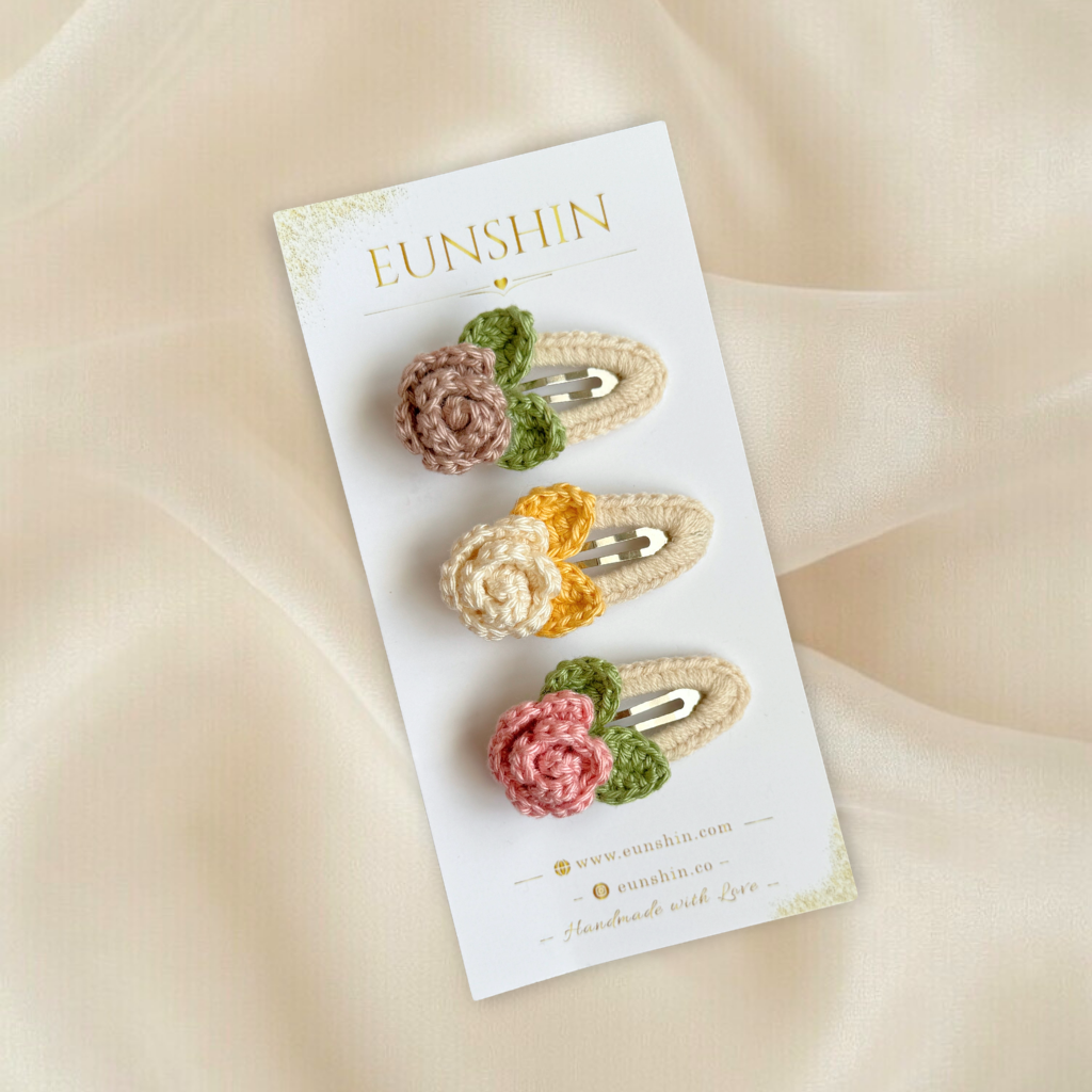 Zarif gül detayı ile tasarlanan bu el yapımı çıt çıt tokalar, miniklerin saçlarını nazikçe tutarken romantik ve şık bir görünüm kazandırır. Günlük kullanım için konforlu, özel günler için ise zarif bir tamamlayıcıdır.