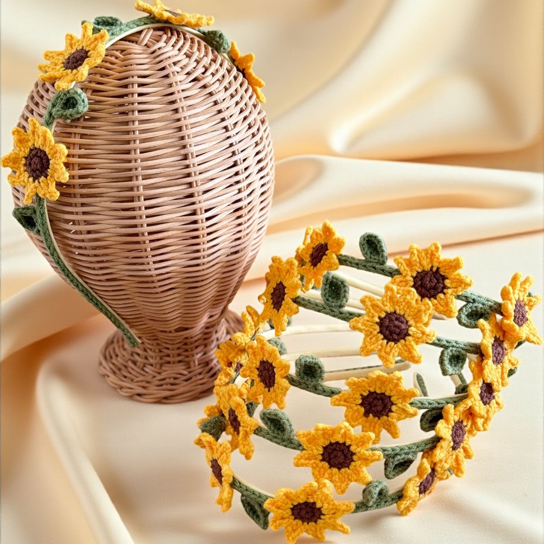 Ayçiçeği Desenli El Yapımı Taç – Çocuk & Yetişkin Uyumlu Örgü Saç Aksesuarı