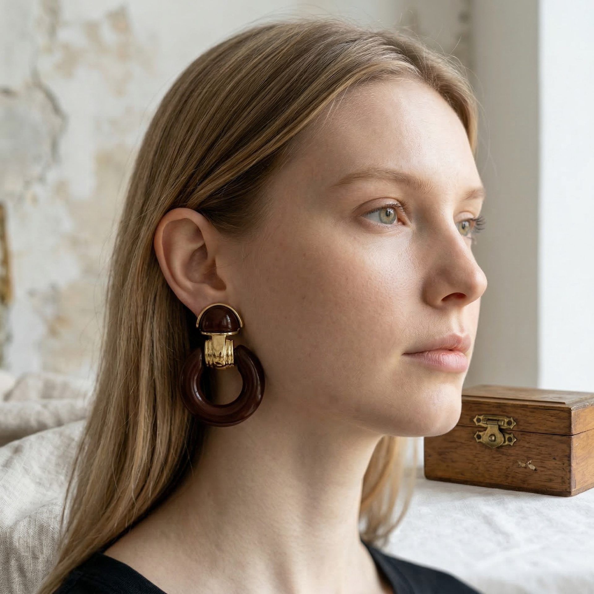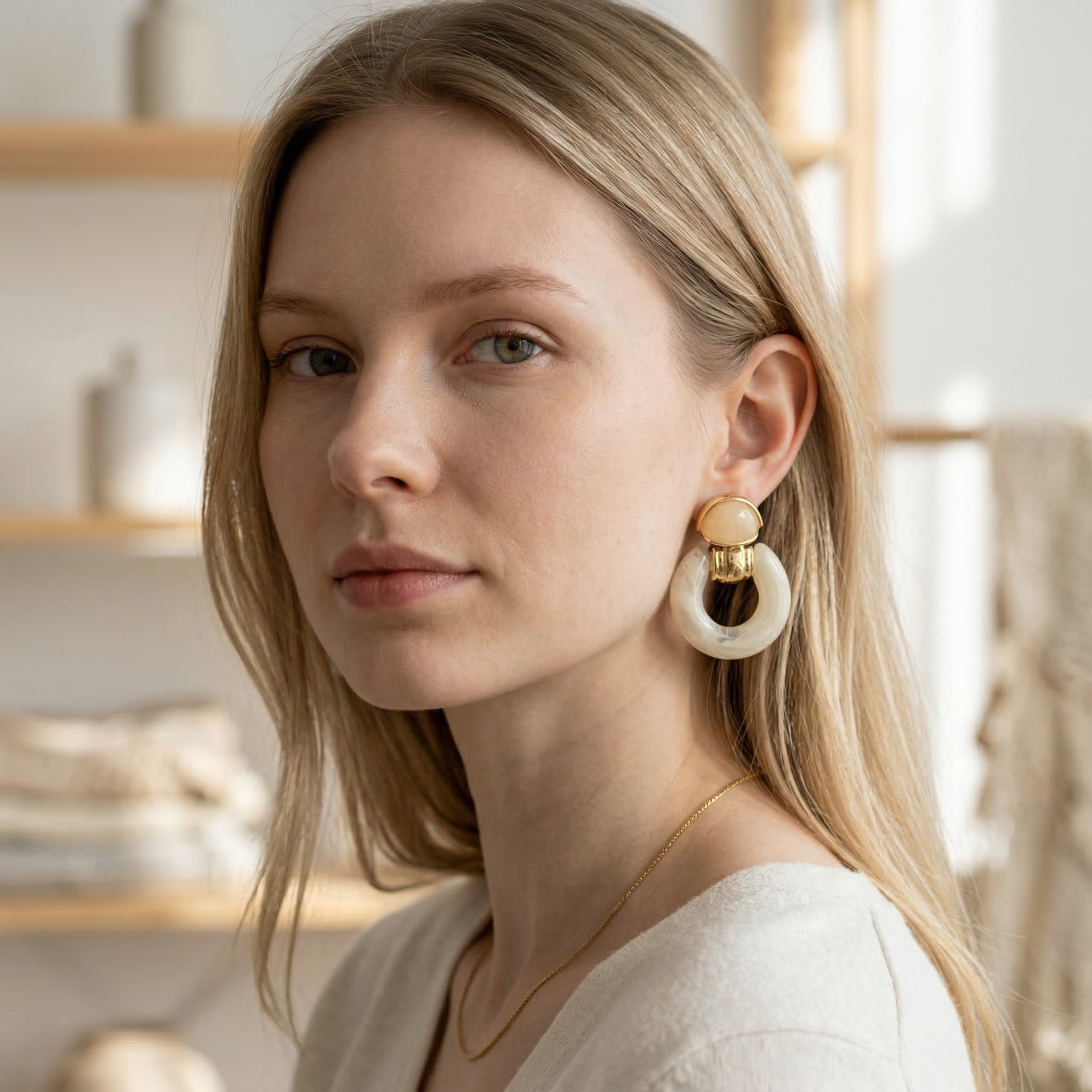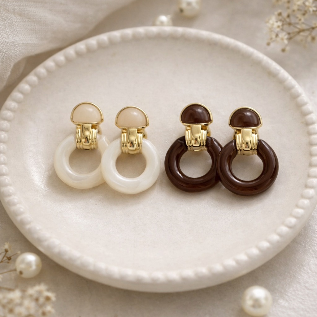 Süt Beyaz & Kahve Halka Küpe | Auren Mango Küpe