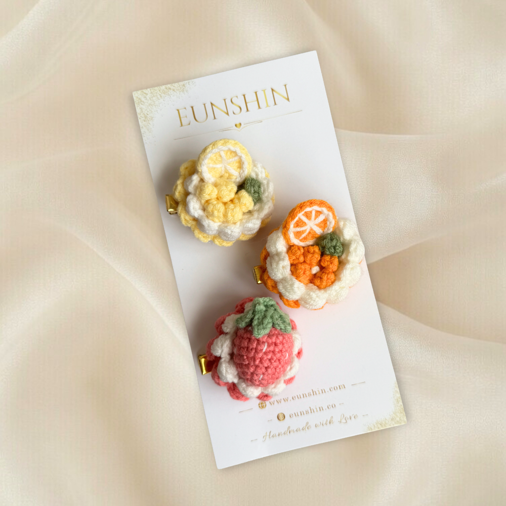 Çilek Tartolet Örgü Toka 4 cm Gold Klips | El Yapımı Meyveli Saç Aksesuarı