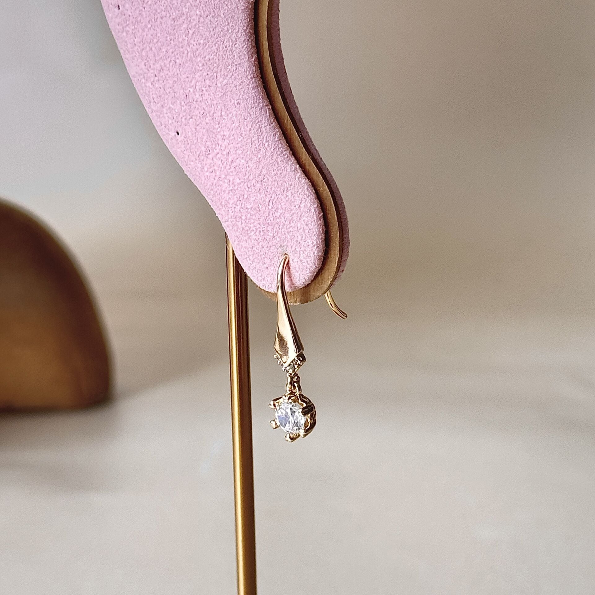 Tek Taş Sallantılı Küpe 14K Gold Kaplama