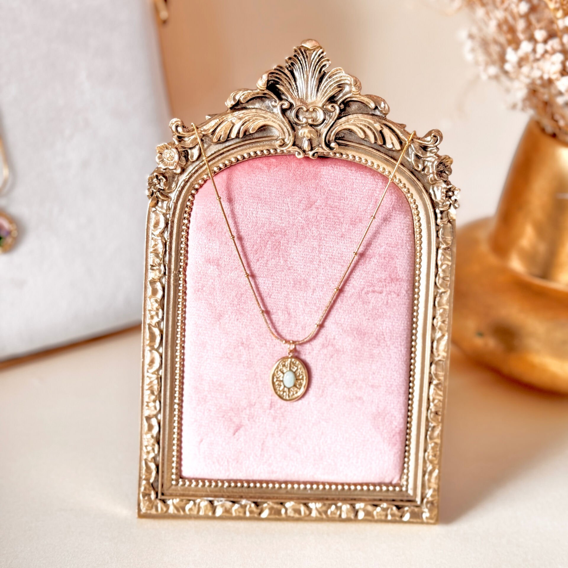 Vintage çelik kolye, zarif ve minimal tasarımıyla günlük kullanım ve özel kombinler için şık bir tamamlayıcıdır. Altın kaplama yüzeyi ile modern ve vintage stilin dengeli birleşimini sunar.