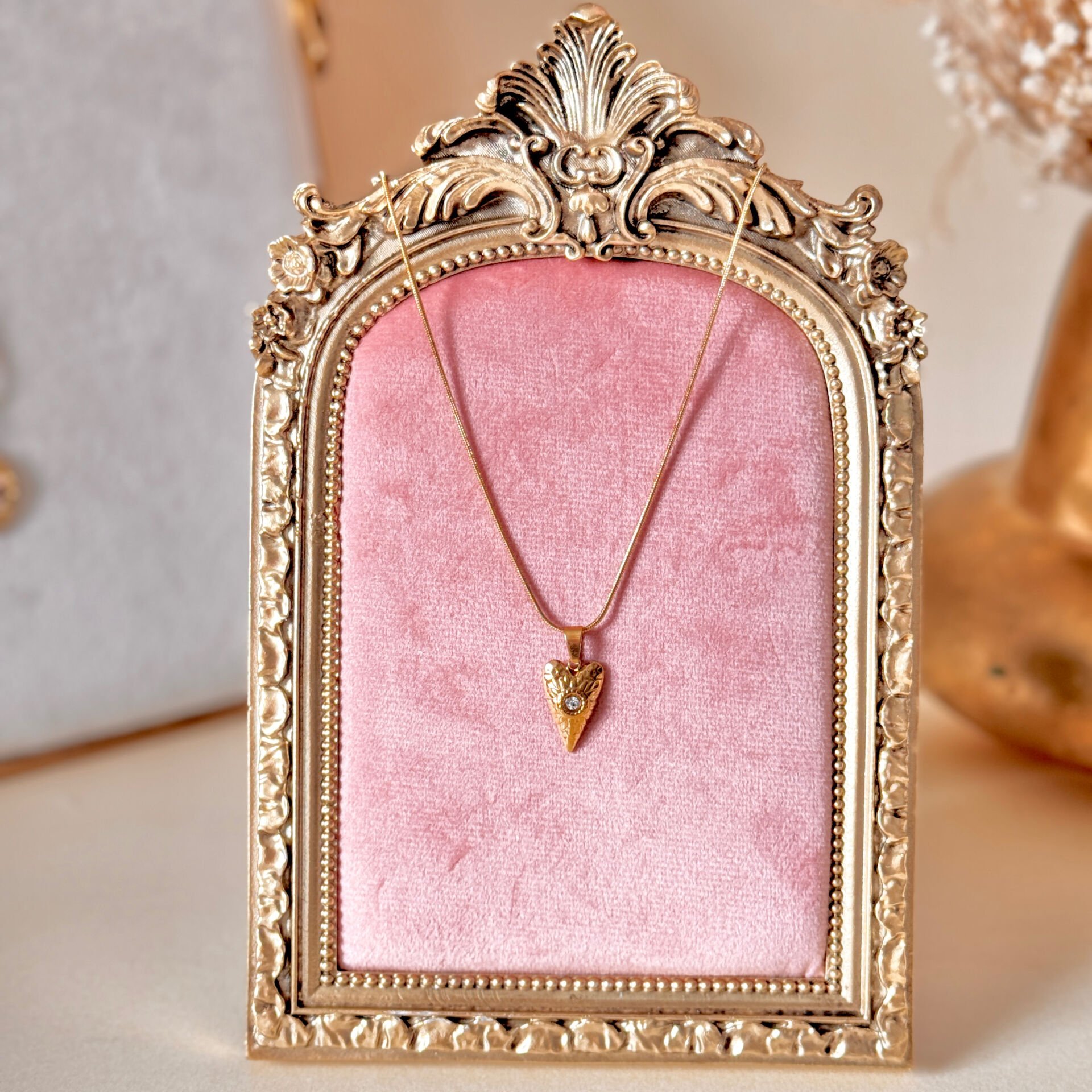 Vintage çelik kolye, zarif ve minimal tasarımıyla günlük kullanım ve özel kombinler için şık bir tamamlayıcıdır. Altın kaplama yüzeyi ile modern ve vintage stilin dengeli birleşimini sunar.