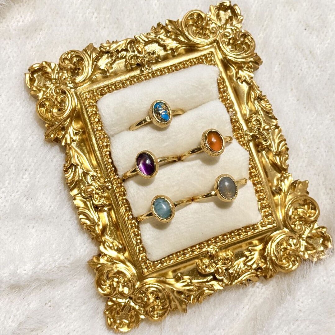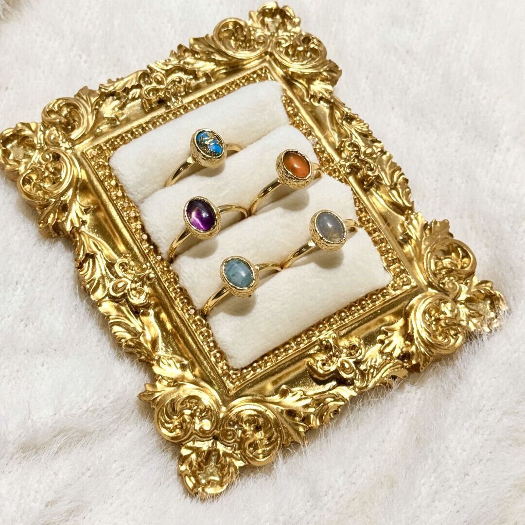 Vintage Doğaltaş Gold Yüzük | Ayarlanabilir Pirinç Yüzük